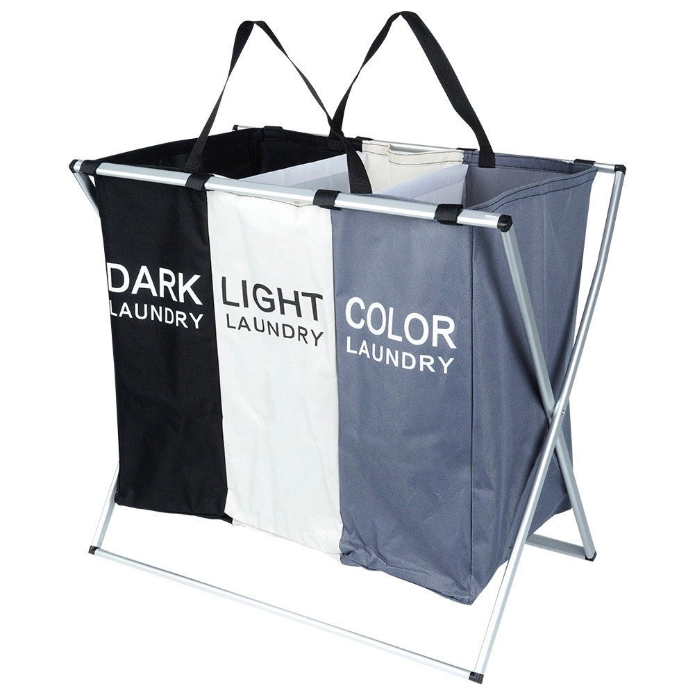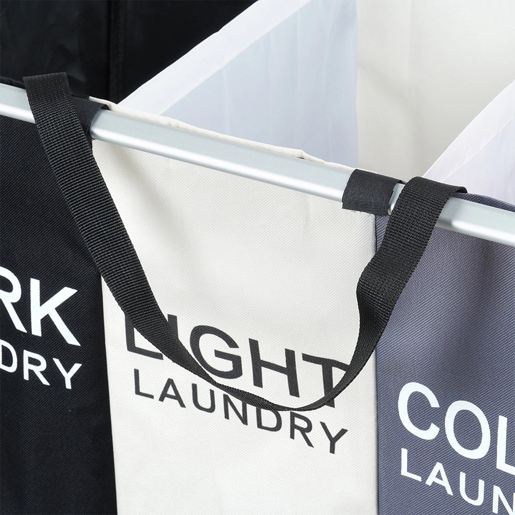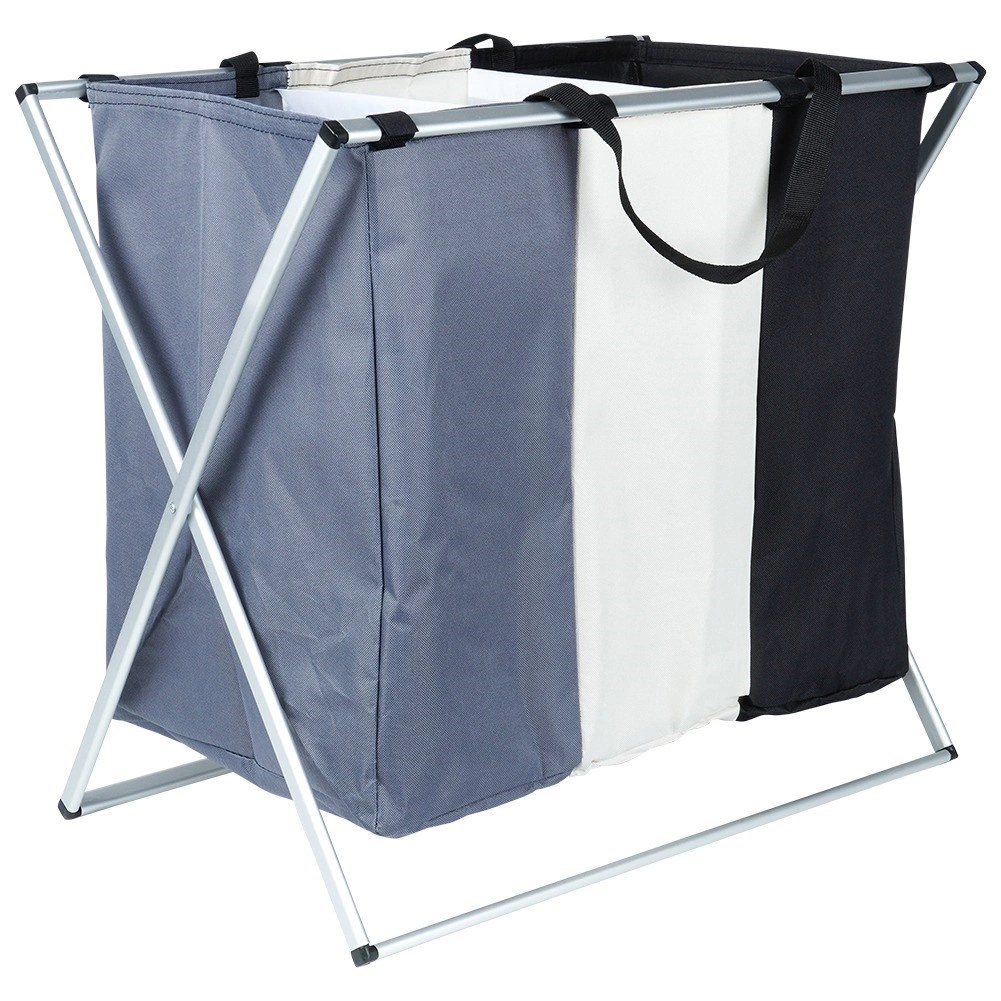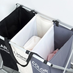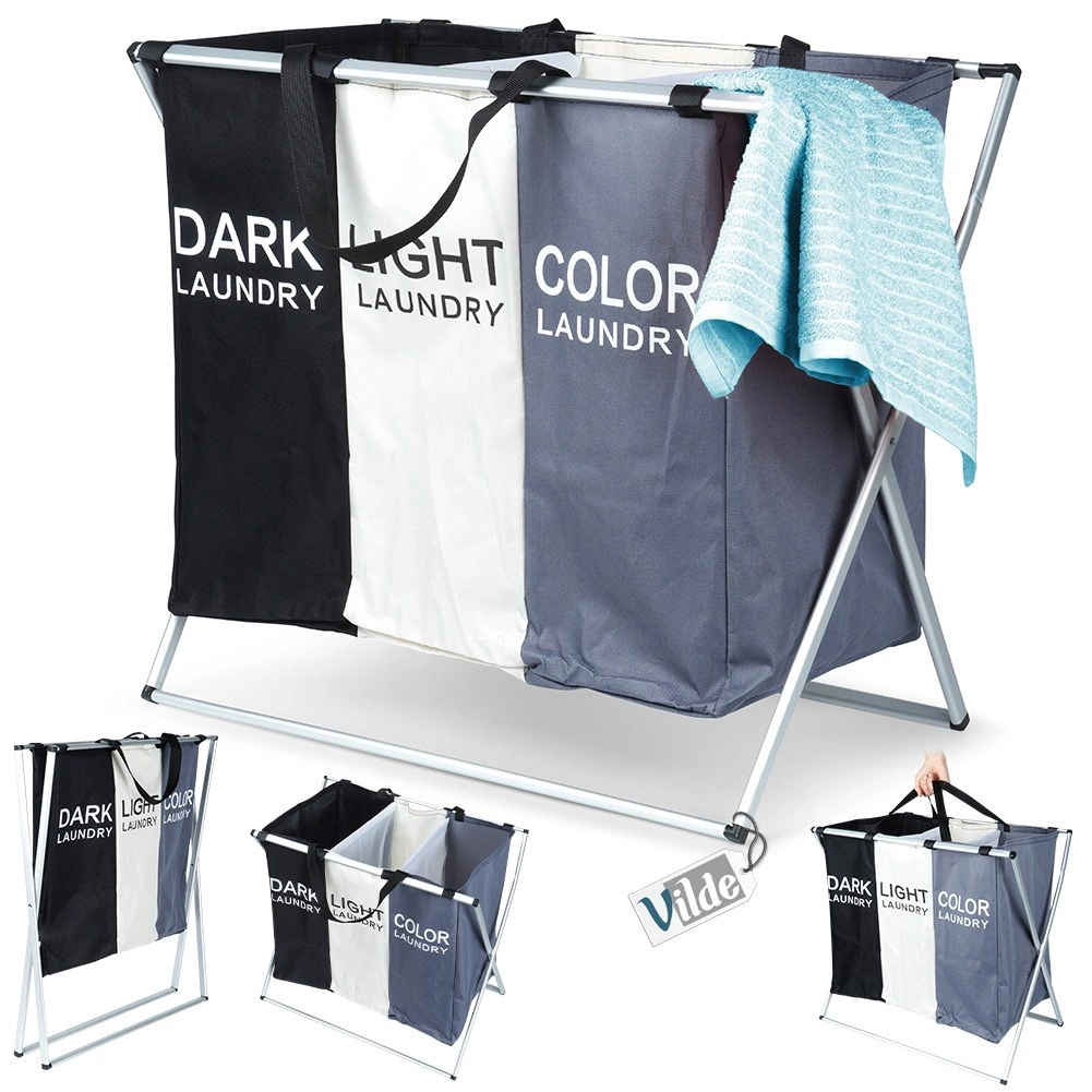Utrzymuj porządek w praniu dzięki przejrzystemu trzykomorowemu koszowi, który umożliwia natychmiastowe sortowanie na ciemne, jasne i kolorowe. Lekka, lecz stabilna metalowa rama w srebrnym kolorze oraz solidne tekstylne worki zapewniają długą żywotność i wygodne użytkowanie na co dzień.