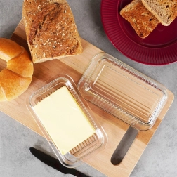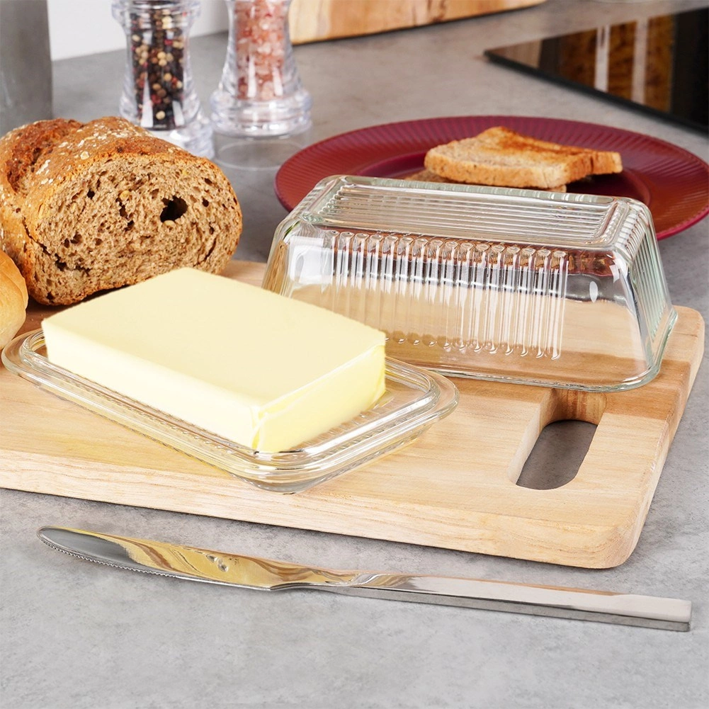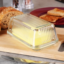 Wykonana z wysokiej jakości, wytrzymałego szkła, które jest higieniczne, bezzapachowe i łatwe w czyszczeniu. Przezroczystość umożliwia szybką kontrolę ilości masła.