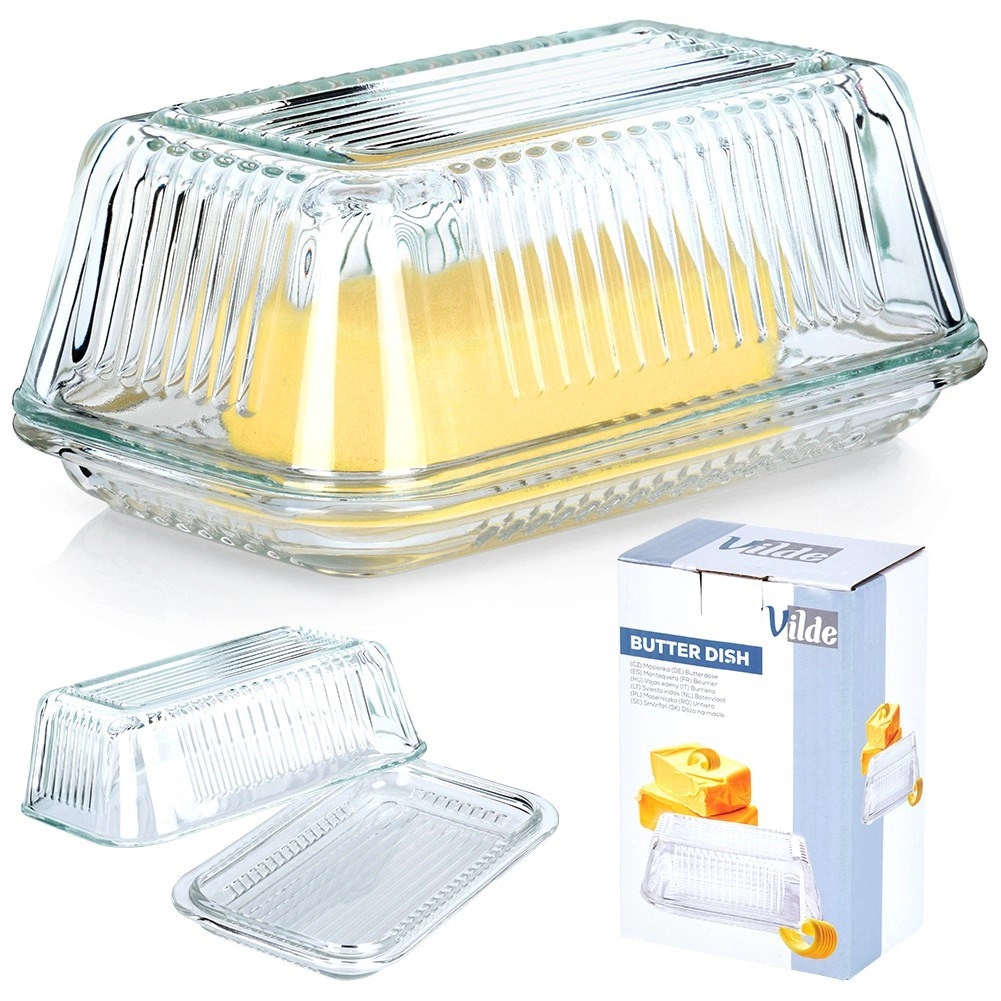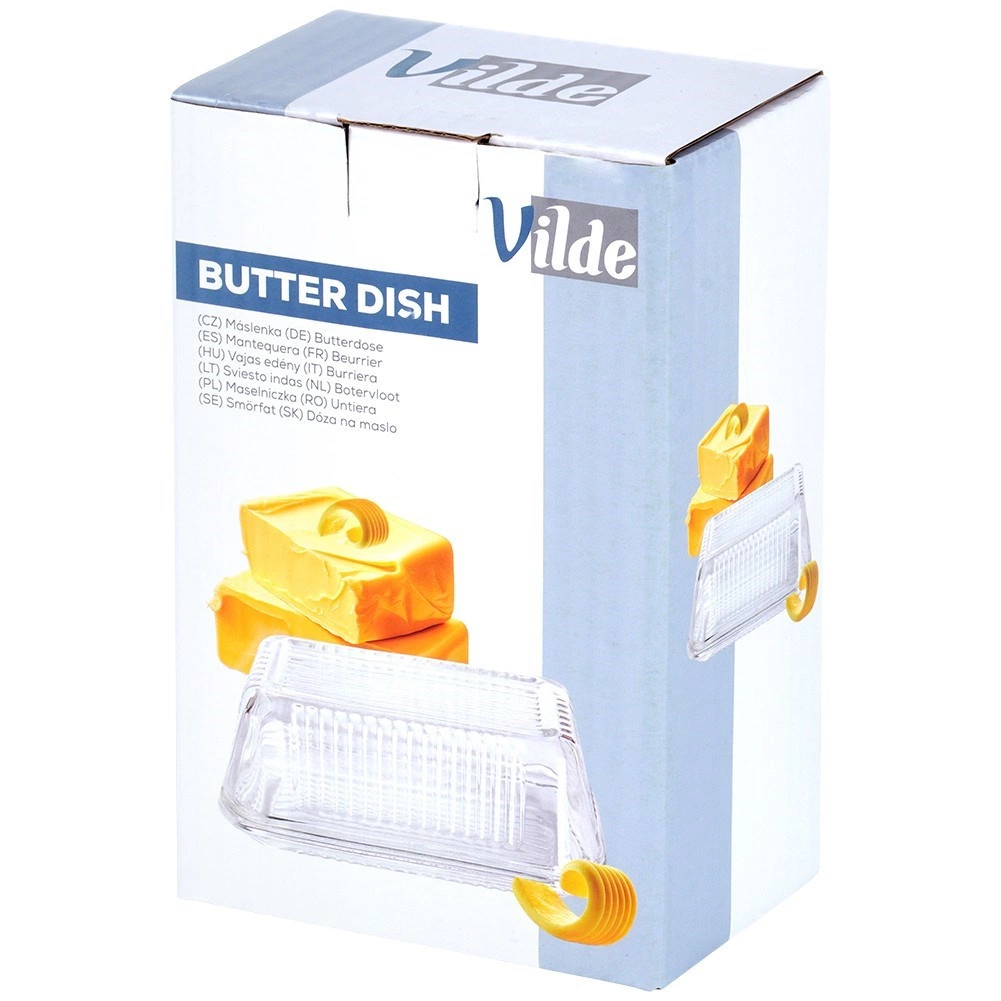 Szklana maselniczka Vilde to stylowy i praktyczny dodatek do każdej kuchni. Przezroczyste, wysokiej jakości szkło z dekoracyjnym żebrowaniem podkreśla elegancki wygląd i ułatwia chwyt. Klasyczny prostokątny kształt doskonale pasuje do dowolnej zastawy oraz umożliwia wygodne serwowanie masła na stole i przejrzyste przechowywanie w lodówce.