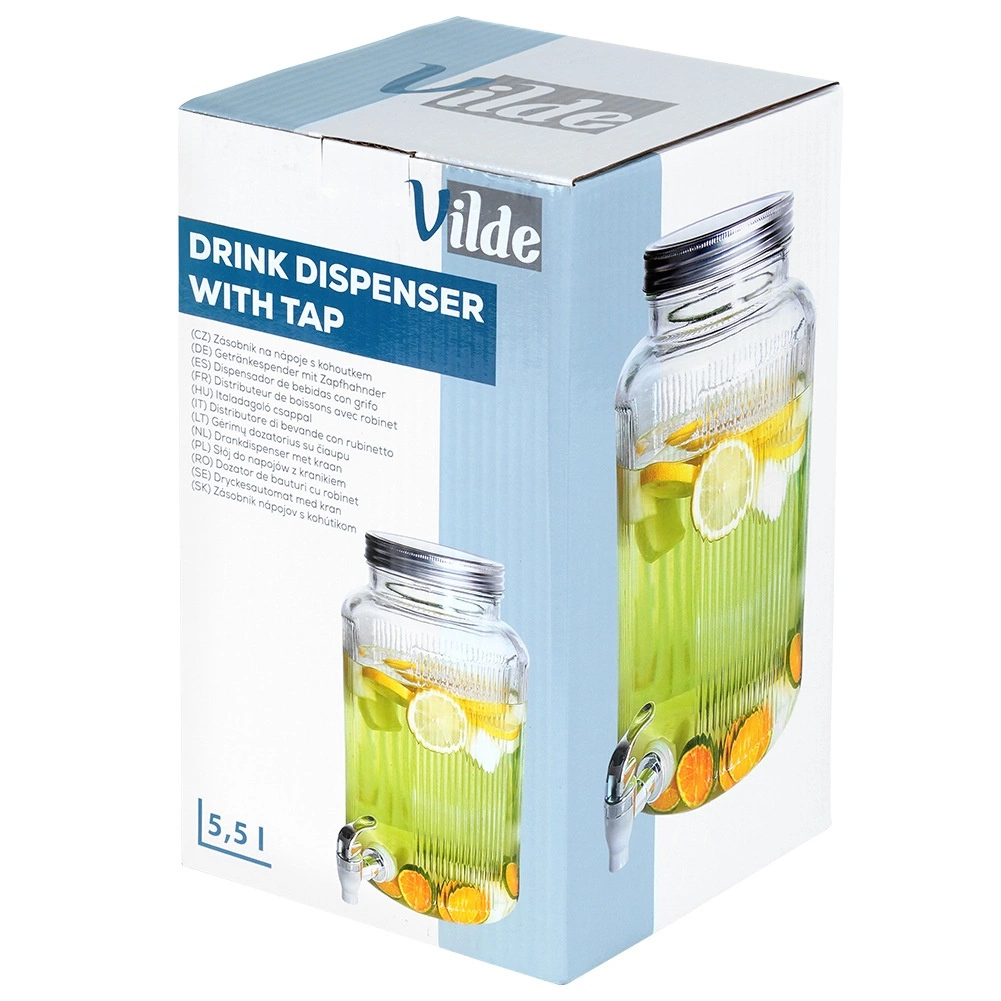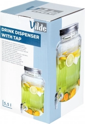 Wielkopojemny szklany dyspenser z kranikiem ułatwia serwowanie napojów przy każdej okazji. Szeroki wlew zapewnia wygodne napełnianie i czyszczenie, a przezroczyste korpus pozwala kontrolować zawartość. Metalowe wieczko niezawodnie chroni napój przed owadami. Idealny do wody z cytrusami, domowej lemoniady, soków, sangrii czy ponczu (nie do gorących napojów).