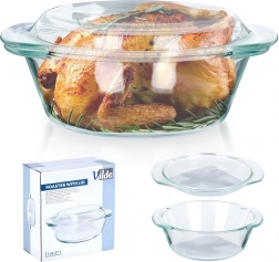 Praktyczna szklana misa do piekarnika z pokrywką w dwóch rozmiarach do wszechstronnego pieczenia i serwowania. Wykonana z borokrzemowego szkła, odporna od -30 °C do +400 °C, odpowiednia do piekarnika, mikrofalówki, zmywarki oraz do lodówki i zamrażarki. Przezroczyste szkło ułatwia kontrolę pieczenia, uchwyty zapewniają bezpieczną manipulację, a pokrywkę można użyć jako drugą misę.