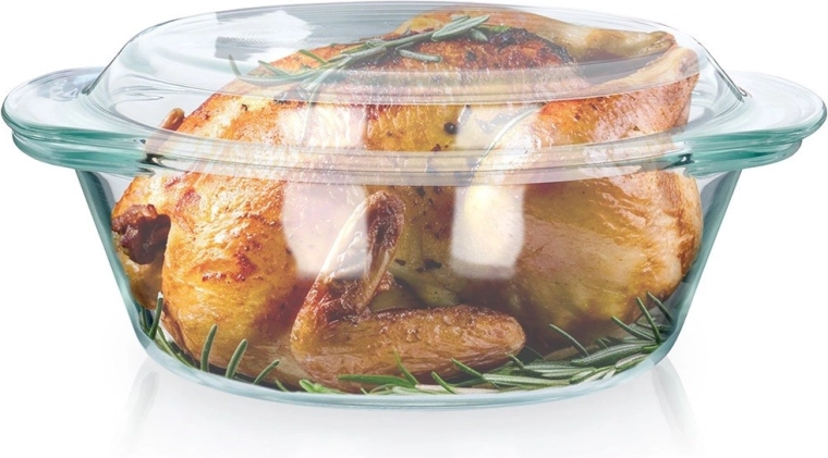 Przejrzyste borokrzemowe szkło pozwala obserwować przebieg pieczenia bez podnoszenia pokrywki – potrawa pozostaje soczysta, a piekarnik utrzymuje stabilną temperaturę.