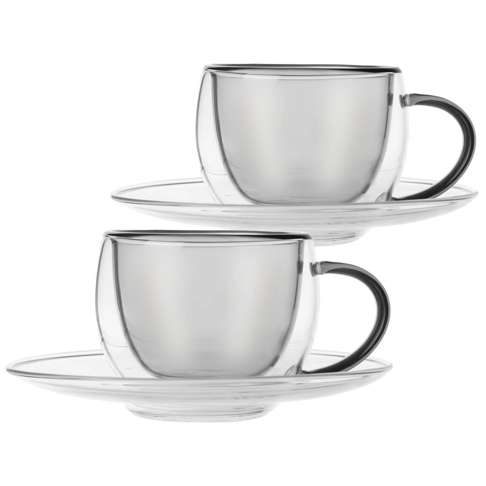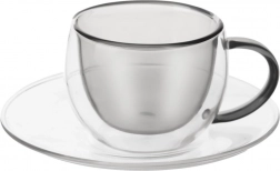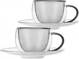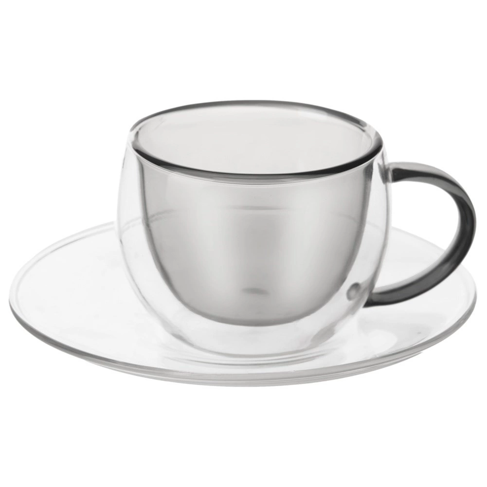Odkryj stylowe termiczne filiżanki, które łączą nowoczesny wygląd i funkcjonalność. Podwójna ścianka z borokrzemowego szkła skutecznie izoluje ciepło i chłód, dzięki czemu gorące napoje nie parzą dłoni, a zimne pozostają dłużej świeże. Każda filiżanka ma 90 ml, wymiary 9 × 6,5 × 5,5 cm, a dopełnia ją idealnie dopasowany spodek o średnicy 12 cm.