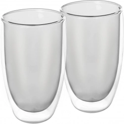 Celebruj kawowe rytuały z elegancją. Podwójna ścianka ze szkła borokrzemowego tworzy warstwę izolacyjną, która pomaga utrzymać gorące napoje dłużej ciepłe i zimne dłużej chłodne, a zewnętrzna powierzchnia pozostaje przyjemna w dotyku. Szklanki mają nowoczesny, czysty kształt, a napoje prezentują się w nich wyjątkowo efektownie.