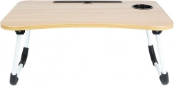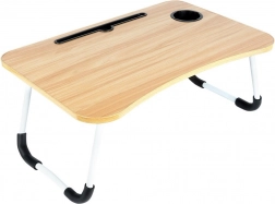 Składany lapdesk zamieni łóżko lub kanapę w wygodne mini stanowisko pracy. Przestronny blat 60 × 40 cm pomieści laptop, mysz i notatnik, zintegrowany rowek bezpiecznie podtrzyma tablet lub telefon, a dedykowany otwór stabilnie zabezpieczy kubek lub butelkę. Dzięki przepustowi na przewody możesz ładować urządzenia bez plątaniny kabli.