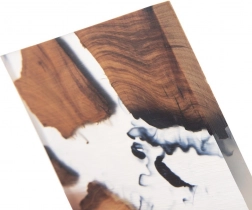 Unikalne połączenie drewna akacjowego i białej żywicy tworzy efekt rzecznego nurtu – każdy egzemplarz jest oryginalny i ozdobi Twój stół.