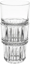 Praktyczna szklanka o pojemności 320 ml z wysokiej jakości, grubego szkła ze zwężonym dnem i pionowym żłobkowaniem dla pewnego chwytu. Jest przezroczysta, idealna do eleganckiego serwowania wody, lemoniad, soków i mrożonych herbat, odpowiednia do zmywarki i mikrofalówki.