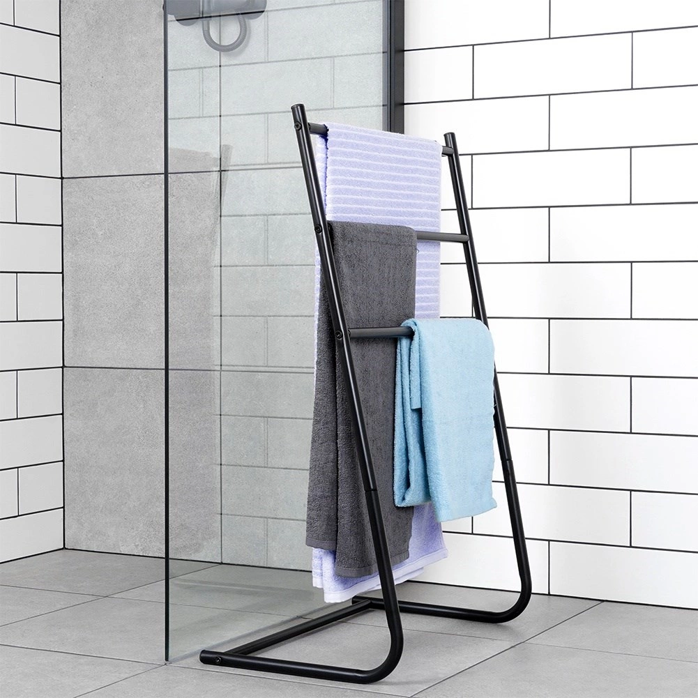 Dzięki trzem poziomom możesz rozwiesić ręczniki tak, aby szybciej schły i pozostawały świeże. Minimalistyczny loftowy design w matowej czerni pasuje do nowoczesnych i klasycznych łazienek, a przy tym stanowi element dekoracyjny.