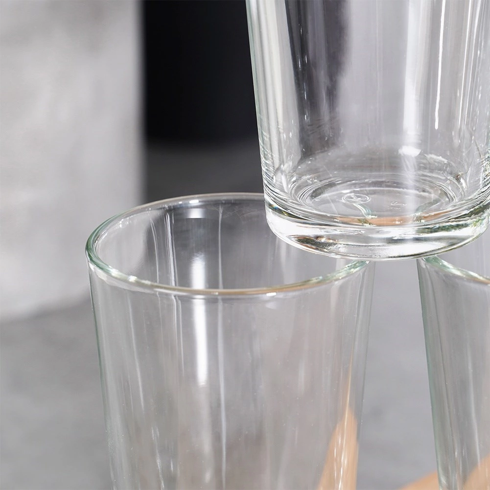 Szklanki wykonane są z solidnego, przezroczystego szkła z grubym dnem dla stabilności i długiej żywotności podczas codziennego użytkowania.
