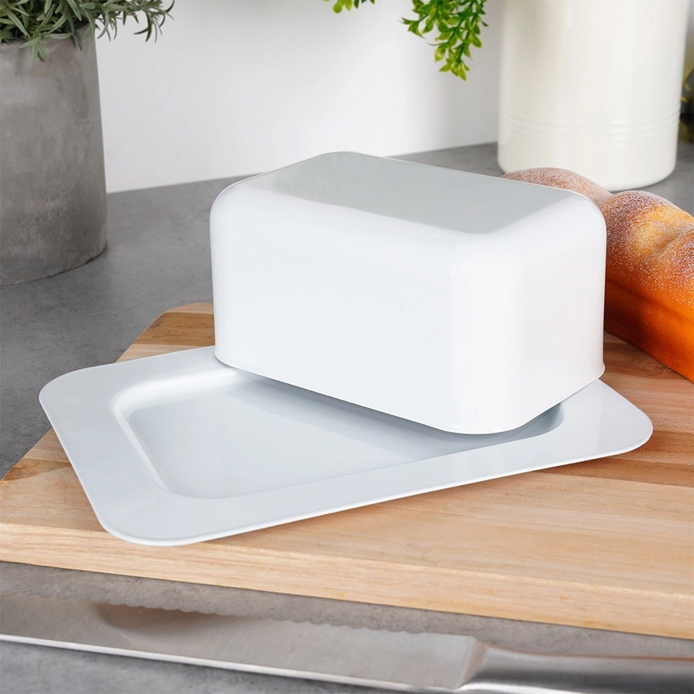 Stylowa stalowa maselniczka w białym kolorze jest idealna do przechowywania i serwowania masła w domu i podczas posiłków z gośćmi. Lakier proszkowy wygląda elegancko i jednocześnie zwiększa odporność na zarysowania.
