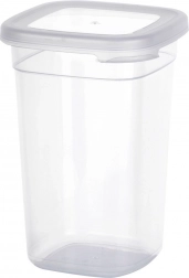 Praktyczny kuchenny pojemnik o pojemności 1 l z hermetyczną pokrywką, idealny na sypkie produkty takie jak kawa, makaron czy orzechy. Przezroczyste ścianki do szybkiej kontroli zawartości, bez BPA, odpowiedni do lodówki, zamrażarki, mikrofalówki (bez pokrywki) oraz zmywarki. Wymiary 11 × 11 × 16 cm.