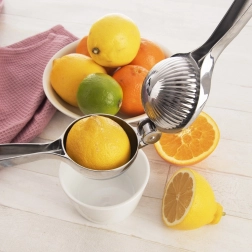 Ręczna wyciskarka do cytrusów LUXY to idealny pomocnik do codziennego przygotowywania świeżego soku z cytryny lub limonki do napojów, deserów i marynat. Kompaktowa konstrukcja z dwoma ramionami tworzy silną dźwignię, dzięki czemu wyciśniesz sok szybko i bez wysiłku. Zintegrowane otwory zatrzymują pestki oraz większe kawałki miąższu, zapewniając czysty rezultat.