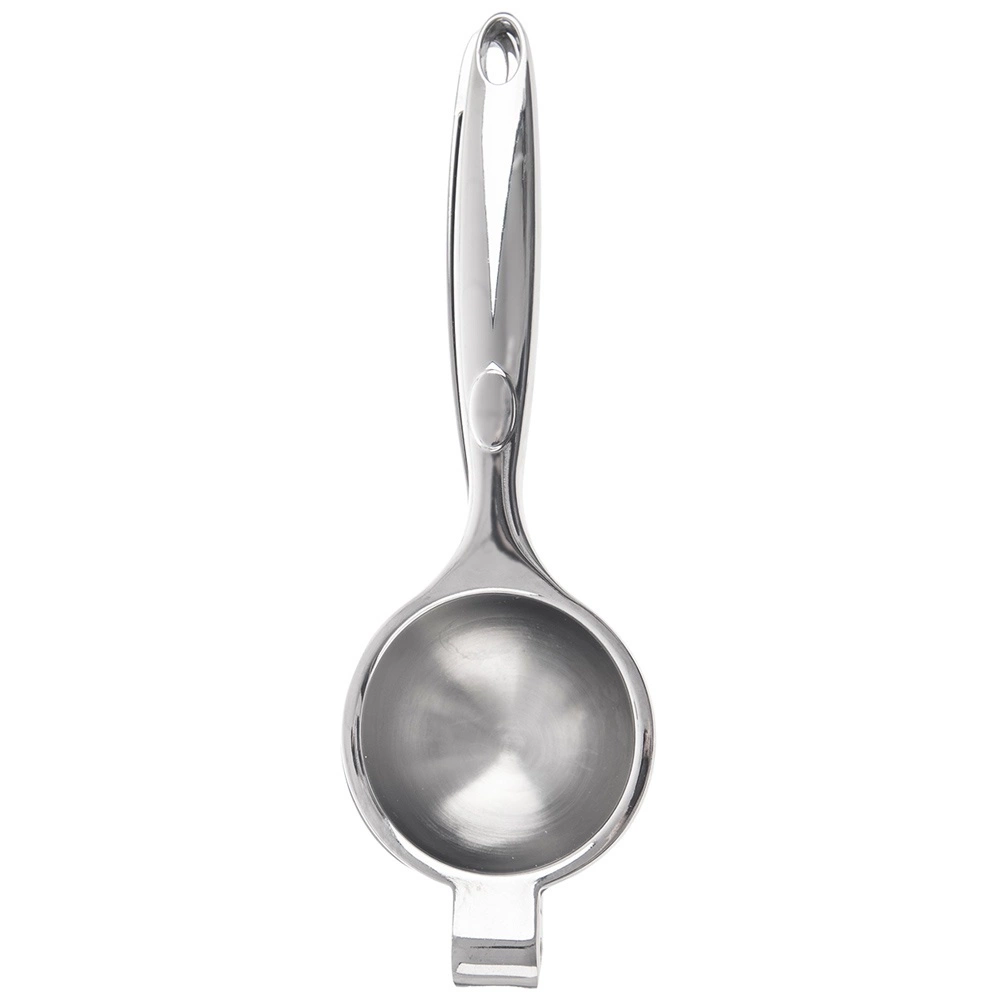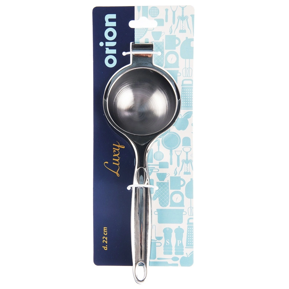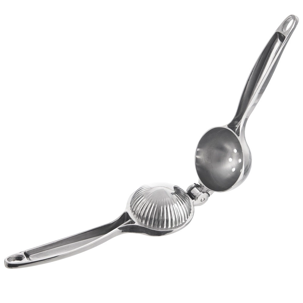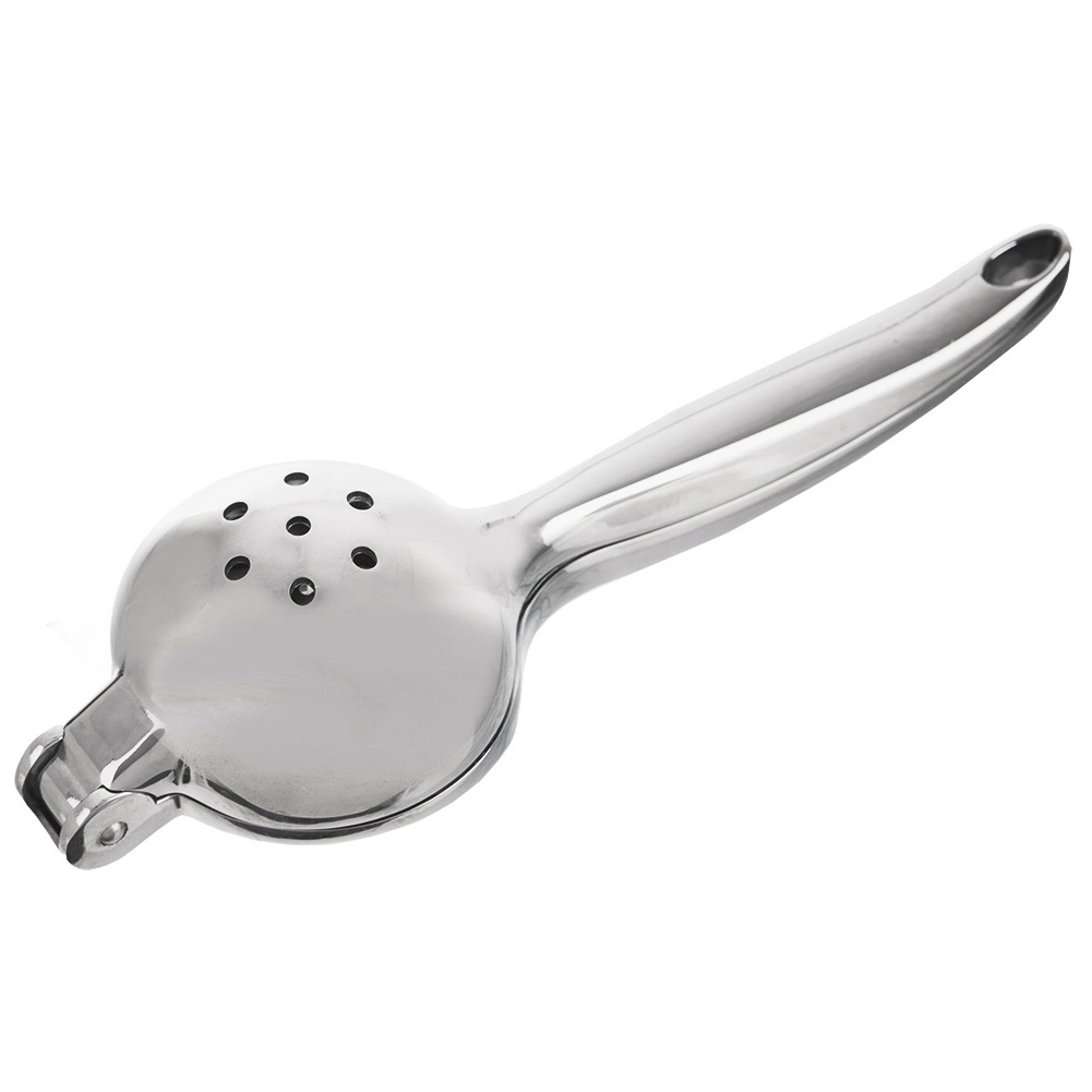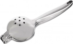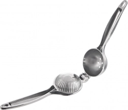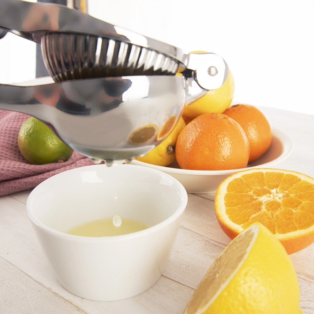Praktyczna ręczna wyciskarka do cytrusów z wytrzymałego metalu o wymiarach 22 × 7 cm do szybkiego i wygodnego wyciskania. Dzięki ergonomicznym uchwytom i perforowanej misce uzyskasz maksimum soku bez pestek i miąższu. Wykonanie w całości z metalu w błyszczącym, nierdzewnym wykończeniu jest trwałe, higieniczne i łatwe w czyszczeniu – nadaje się także do zmywarki.