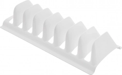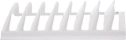 Stojak mieści do 8 sztuk naczyń, a jego równomiernie rozmieszczone przegrody zapobiegają wzajemnemu dotykaniu i otarciom. Wytrzymałe wykonanie z tworzywa zapewnia długą żywotność i bezproblemową pielęgnację – po użyciu wystarczy włożyć go do zmywarki.