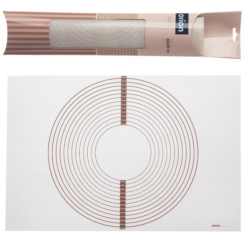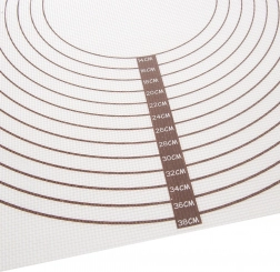 Praktyczna silikonowa mata o wymiarach 60 × 40 cm do wałkowania i pieczenia ciasta z powierzchnią nieprzywierającą, antypoślizgową oraz okręgami i skalą w cm. Odpowiednia do piekarnika i zmywarki, odporna na temperatury od −40 °C do +220 °C i łatwa w przechowywaniu po zrolowaniu.