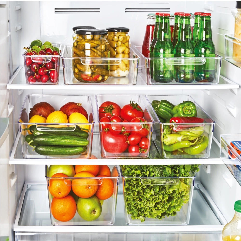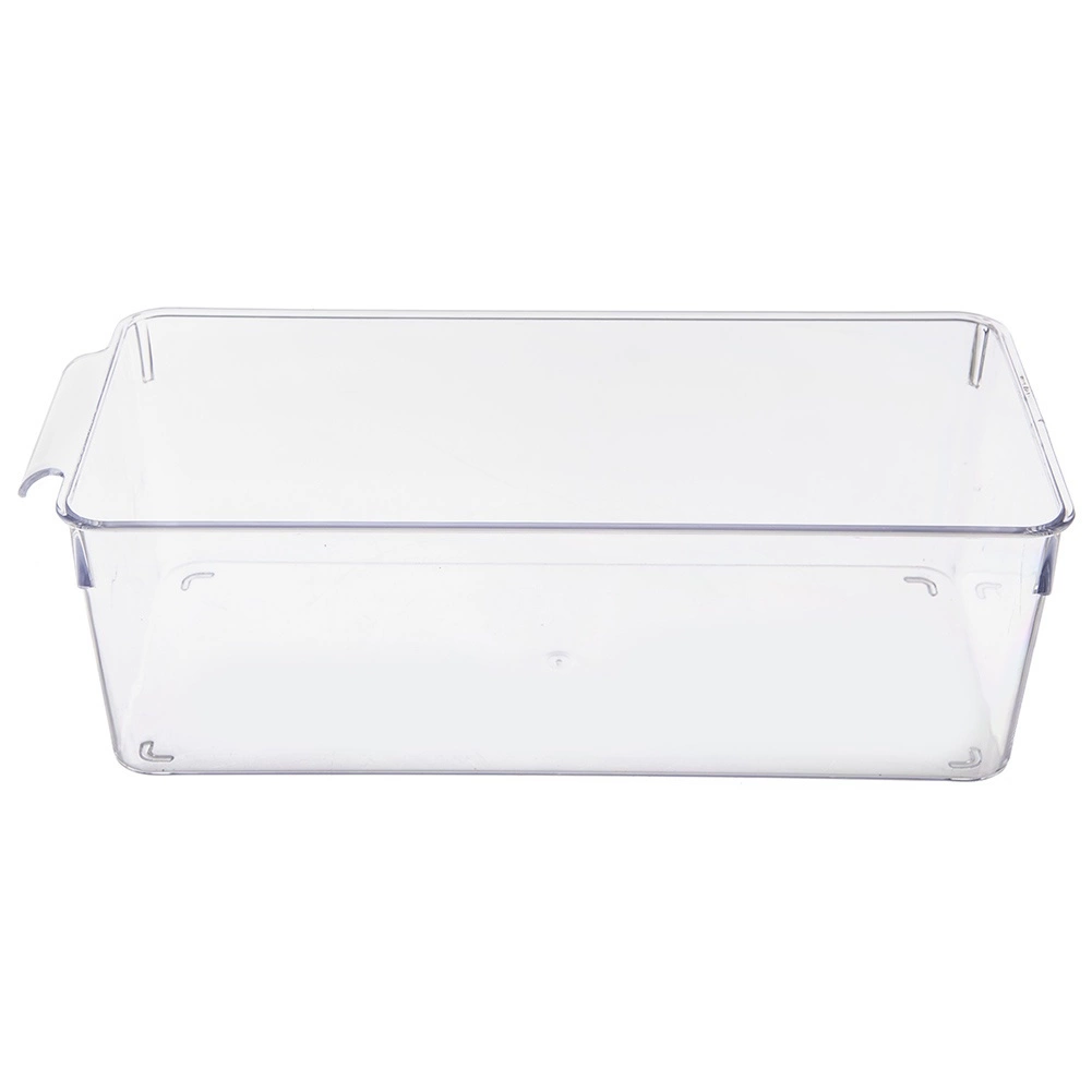 Praktyczny, przezroczysty organizer do lodówki o wymiarach 32,5 × 15 × 10 cm pomaga utrzymać porządek w żywności i maksymalnie wykorzystać przestrzeń. Dzięki zintegrowanemu uchwytowi łatwo się wysuwa, jest wykonany z bezpiecznego dla żywności plastiku i świetnie się czyści. Idealny na owoce i warzywa, butelki i słoiczki oraz inne domowe akcesoria.