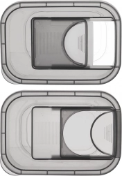 Zintegrowany uchylny lejek w pokrywce umożliwia precyzyjne i czyste wsypywanie płatków, makaronu lub granulek bezpośrednio do miski czy garnka.