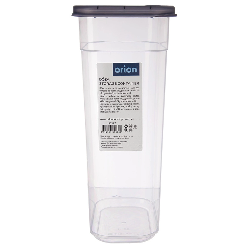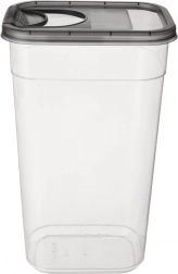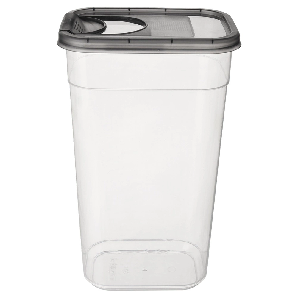 Praktyczny pojemnik o pojemności 3,2 l z wbudowanym dozownikiem zapewnia hermetyczne przechowywanie i wygodne wysypywanie produktów sypkich. Przezroczyste korpusy dla szybkiej kontroli zawartości, wysokiej jakości plastik bez BPA, odpowiedni do lodówki, zamrażarki, kuchenki mikrofalowej (bez pokrywki) oraz zmywarki. Idealny na makaron, płatki, kawę, orzechy oraz karmę dla zwierząt.