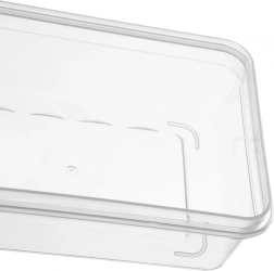 Pojemnik z wytrzymałego, lekkiego i przezroczystego plastiku świetnie sprawdza się do codziennego przechowywania i przenoszenia żywności. Niski profil idealnie pasuje do plastrów serów, szynek czy delikatesów, pokrywka ściśle przylega i pomaga zachować świeżość oraz aromat.
