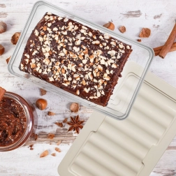 - Wytrzymały przezroczysty plastik, pokrywka w kremowym kolorze