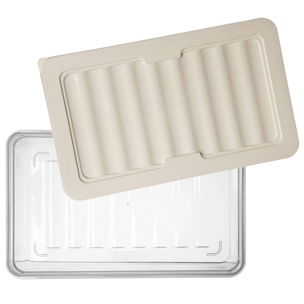 Praktyczny niski pojemnik na żywność o pojemności 1 litra z uszczelniającą pokrywką w kremowym kolorze. Dzięki przezroczystemu wykonaniu zawsze masz podgląd zawartości, możliwość sztaplowania oszczędza miejsce w lodówce, a odporność od -25 °C do +95 °C umożliwia użycie w zamrażarce, lodówce, kuchence mikrofalowej (bez pokrywki) oraz zmywarce. Idealny do serów i wędlin dzięki pofalowanemu dnu dla lepszej cyrkulacji powietrza.