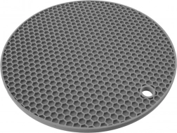Praktyczna silikonowa podkładka pod gorące naczynia o wymiarach 17,5 × 17,5 cm chroni blat roboczy i stół przed wysoką temperaturą oraz zarysowaniami. Ma antypoślizgowy wzór plastra miodu, otwór do zawieszenia i jest wykonana z wytrzymałego silikonu odpowiedniego do zmywarki. Odporna na temperatury od -10 °C do +220 °C, sprawdzi się w każdej kuchni.