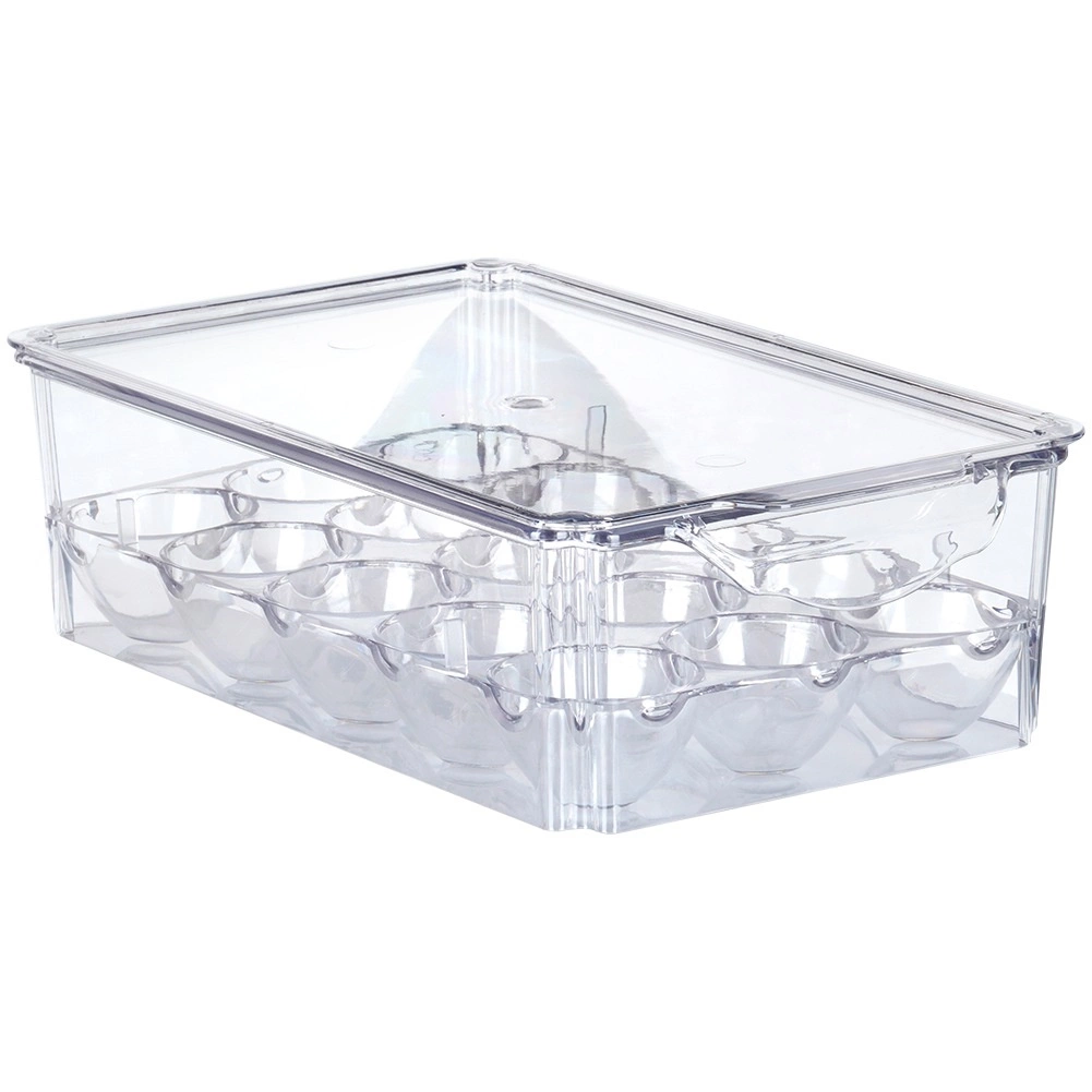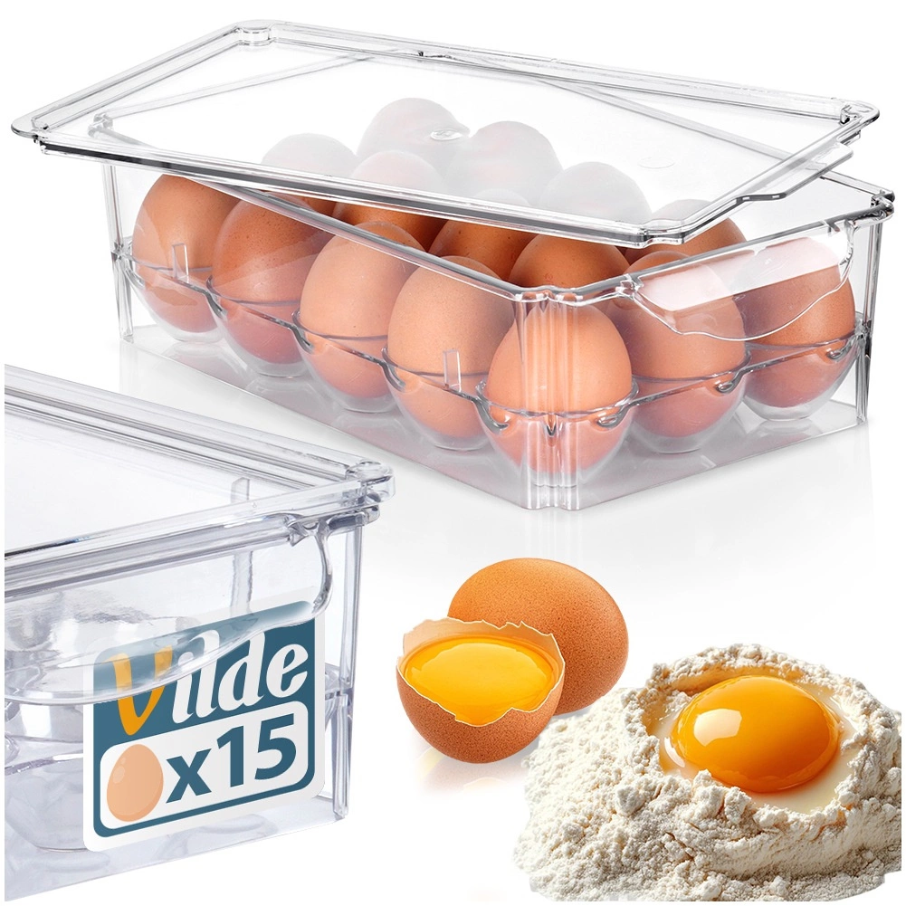Utrzymuj jajka świeże i bezpieczne. Ten wytrzymały, w pełni przezroczysty pojemnik na 15 jajek z praktyczną pokrywką umożliwia łatwe piętrowanie, zapobiega turlaniu i chroni przed stłuczeniem oraz pochłanianiem zapachów w lodówce. Dzięki podwyższonym gniazdom jajka nie dotykają dna i pozostają stabilnie ułożone.