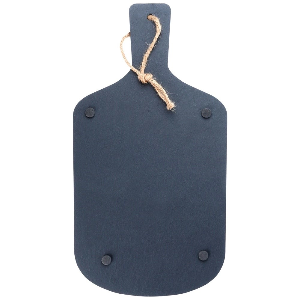 Stylowa deska z naturalnego łupku wyniesie prezentację Twoich przysmaków na nowy poziom. Dzięki uchwytowi wygodnie się ją przenosi, a otwór ze sznurkiem pozwala na łatwe zawieszenie. Naturalnie teksturyzowana kamienna powierzchnia ze szlifowanymi krawędziami wygląda nowocześnie i ponadczasowo.