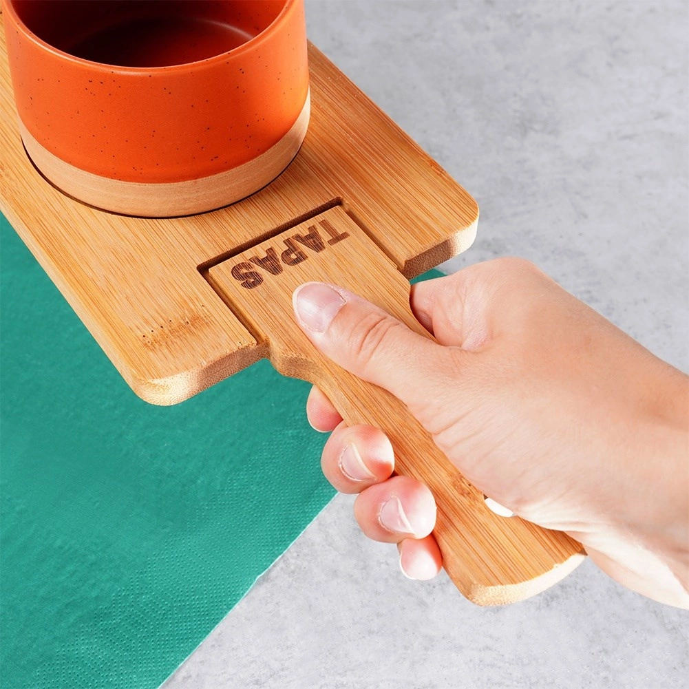 Podstawa z naturalnego bambusa z wyznaczonymi miejscami na miski zapewnia stabilność podczas serwowania i przenoszenia oraz dodaje stołowi naturalnego akcentu.