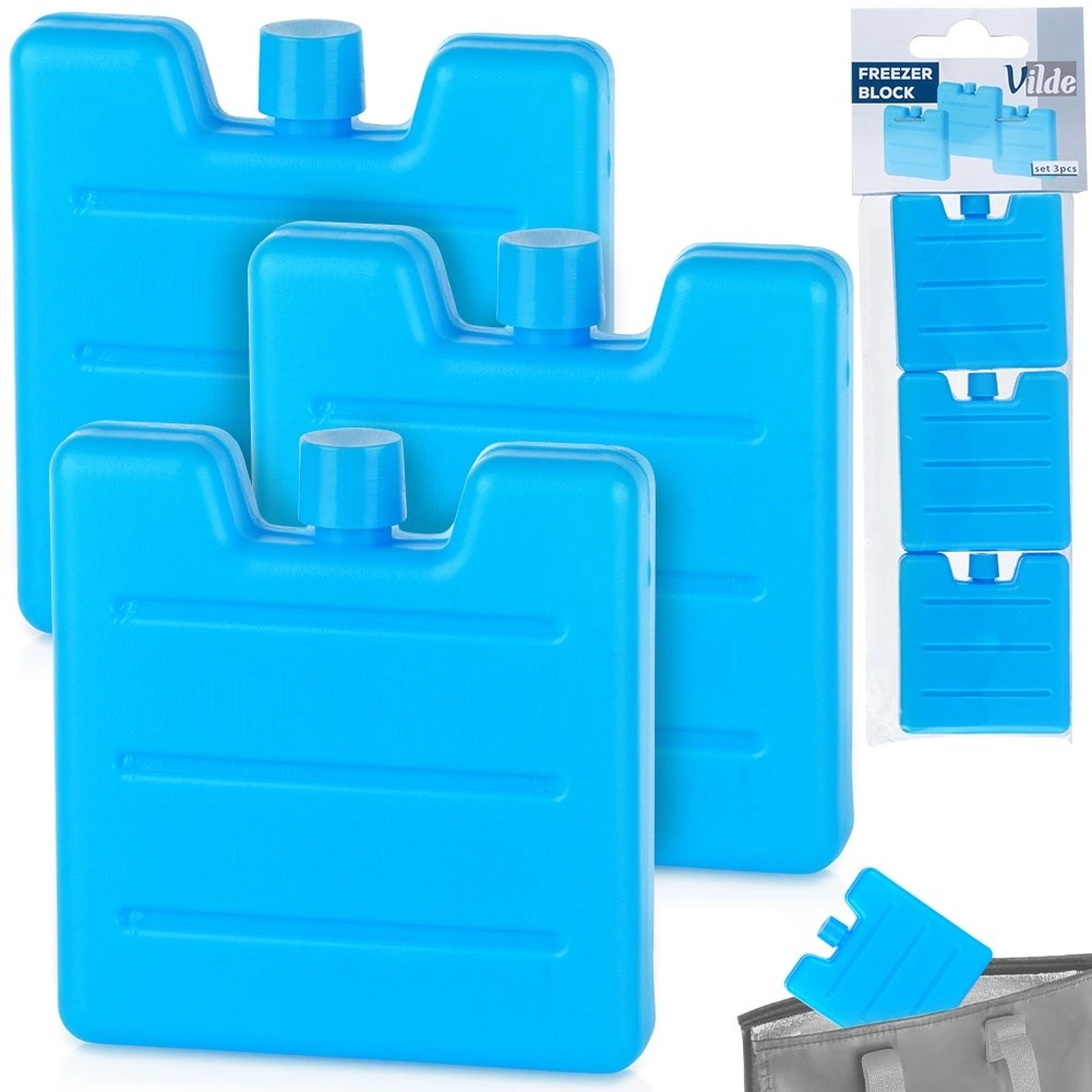 Zachowaj świeżość w podróży dzięki zestawowi trzech wkładów chłodzących o pojemności 100 ml. Wkłady wykonane są z trwałego plastiku w niebieskim kolorze i wypełnione medium zapewniającym długotrwałe chłodzenie bez przecieków. Dzięki płaskiemu kształtowi łatwo ułożysz je wokół żywności lub napojów.