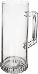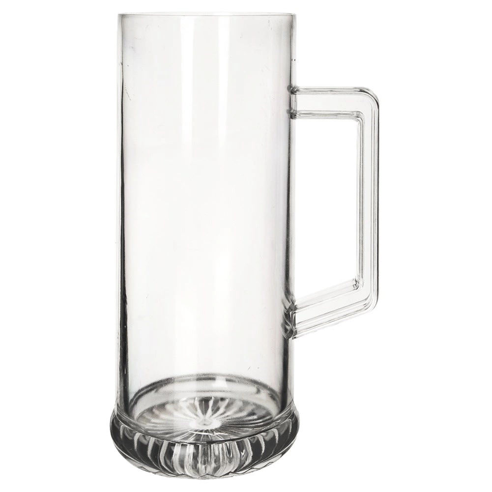 Praktyczny plastikowy kufel do piwa o pojemności 620 ml to świetny wybór dla miłośników piwa i napojów bezalkoholowych. Wykonany z wysokiej jakości przezroczystego materiału, który wyglądem przypomina szkło, lecz jest wyraźnie lżejszy i odporny na stłuczenia. Dolna część ze stylowym „kryształowym” zdobieniem nadaje kuflowi elegancki wygląd.