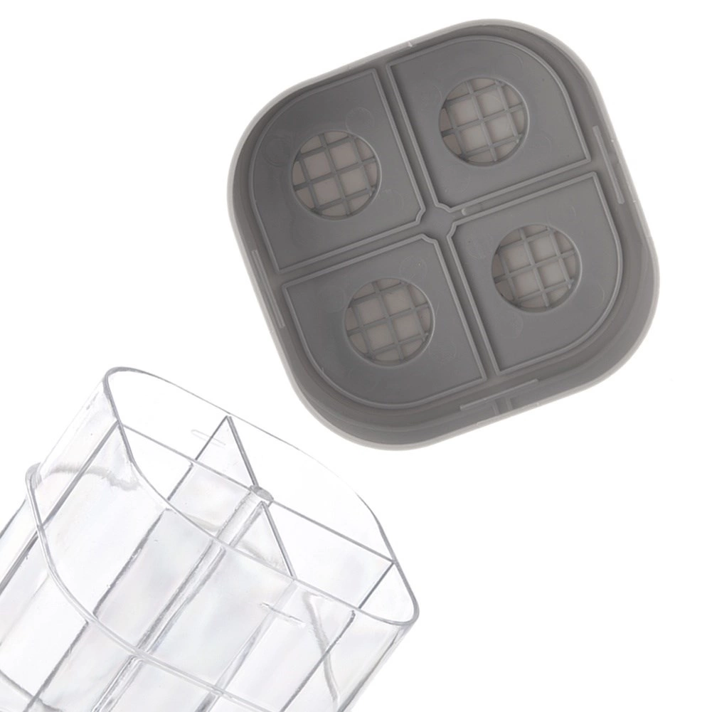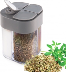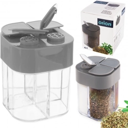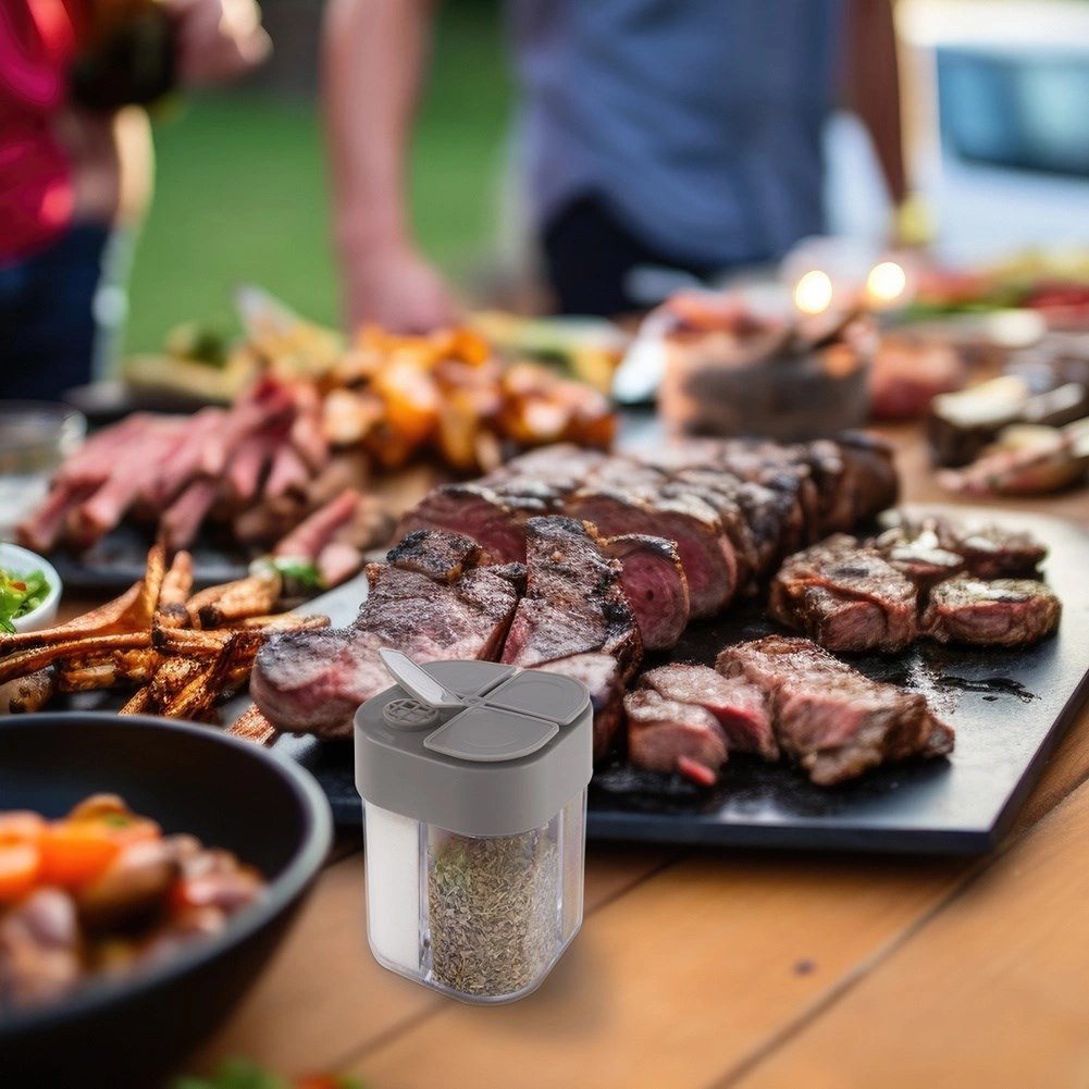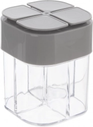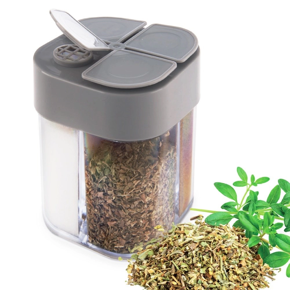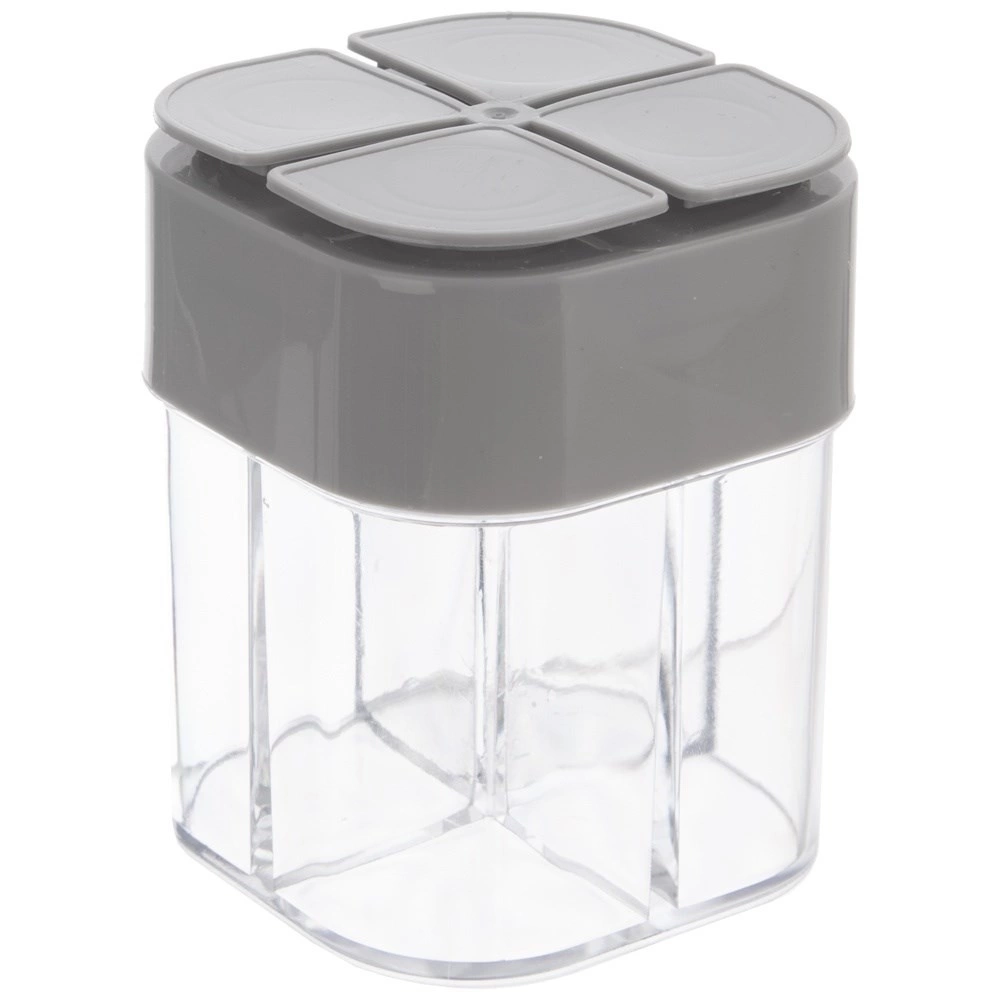 Ten uniwersalny pojemnik na przyprawy pomoże utrzymać porządek i przegląd – w jednym kompaktowym pudełku (6,5 × 8,5 cm) wygodnie przechowasz cztery różne rodzaje przypraw. Przezroczysta konstrukcja umożliwia natychmiastową kontrolę zawartości, a szara pokrywka z wieloma otworami zapewnia precyzyjne dozowanie według potrzeb.