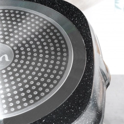 Powłoka granitowa umożliwia gotowanie z minimalną ilością oleju, zapobiega przypalaniu i czyści się w kilka chwil.