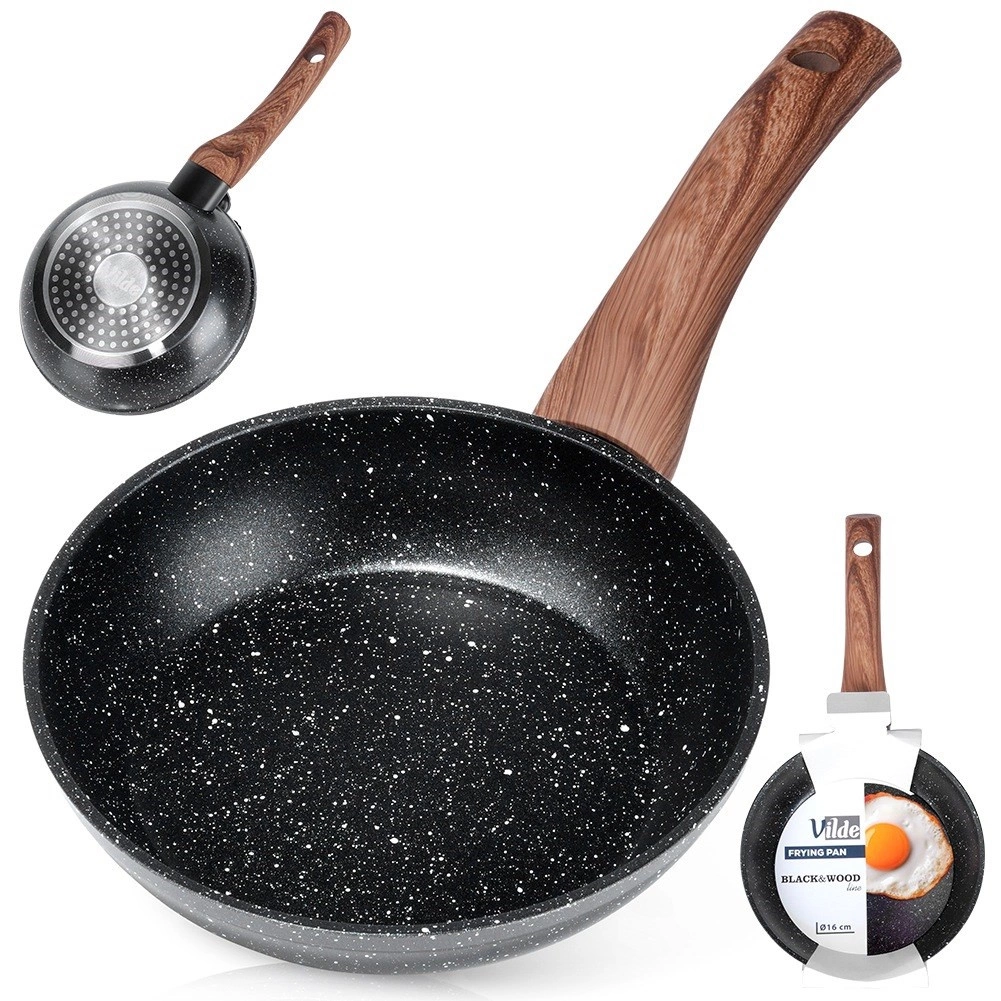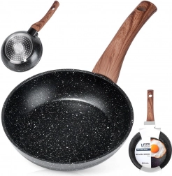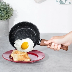 Kompaktowa granitowa patelnia o średnicy 16 cm do codziennego gotowania. Dzięki nieprzywierającej powierzchni przygotujesz potrawy z minimalną ilością tłuszczu, a ergonomiczny uchwyt z imitacją drewna zapewni bezpieczny chwyt. Patelnia jest odpowiednia na wszystkie rodzaje kuchenek, w tym indukcję i można ją myć w zmywarce.