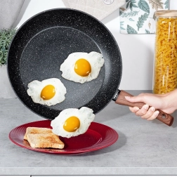 Specjalna kamienna powłoka umożliwia gotowanie z minimalną ilością tłuszczu, zapobiega przypalaniu i przyspiesza czyszczenie. Idealna do codziennego smażenia i delikatnego duszenia.