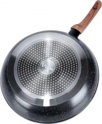 Odkryj uniwersalną patelnię BLACK & WOOD, która łączy trwały aluminiowy odlew z nowoczesną granitową, nieprzywierającą powłoką. Dzięki dużej średnicy 32 cm wygodnie przygotujesz porcje dla całej rodziny, i to z minimalną ilością oleju. Stylowy czarny design z drewnianym dekorem świetnie pasuje do każdej kuchni.