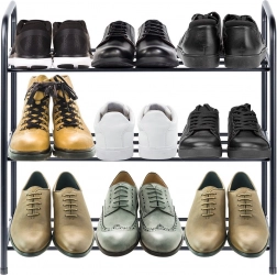 Dzięki trzem półkom z odstępem około 20 cm wygodnie pomieścisz trampki, półbuty i botki. Kompaktowy rzut oszczędza miejsce, a stojak bez trudu wpasuje się w przedpokój, korytarz, garderobę, garaż lub piwnicę. Idealne rozwiązanie do codziennej organizacji obuwia całej rodziny.