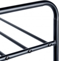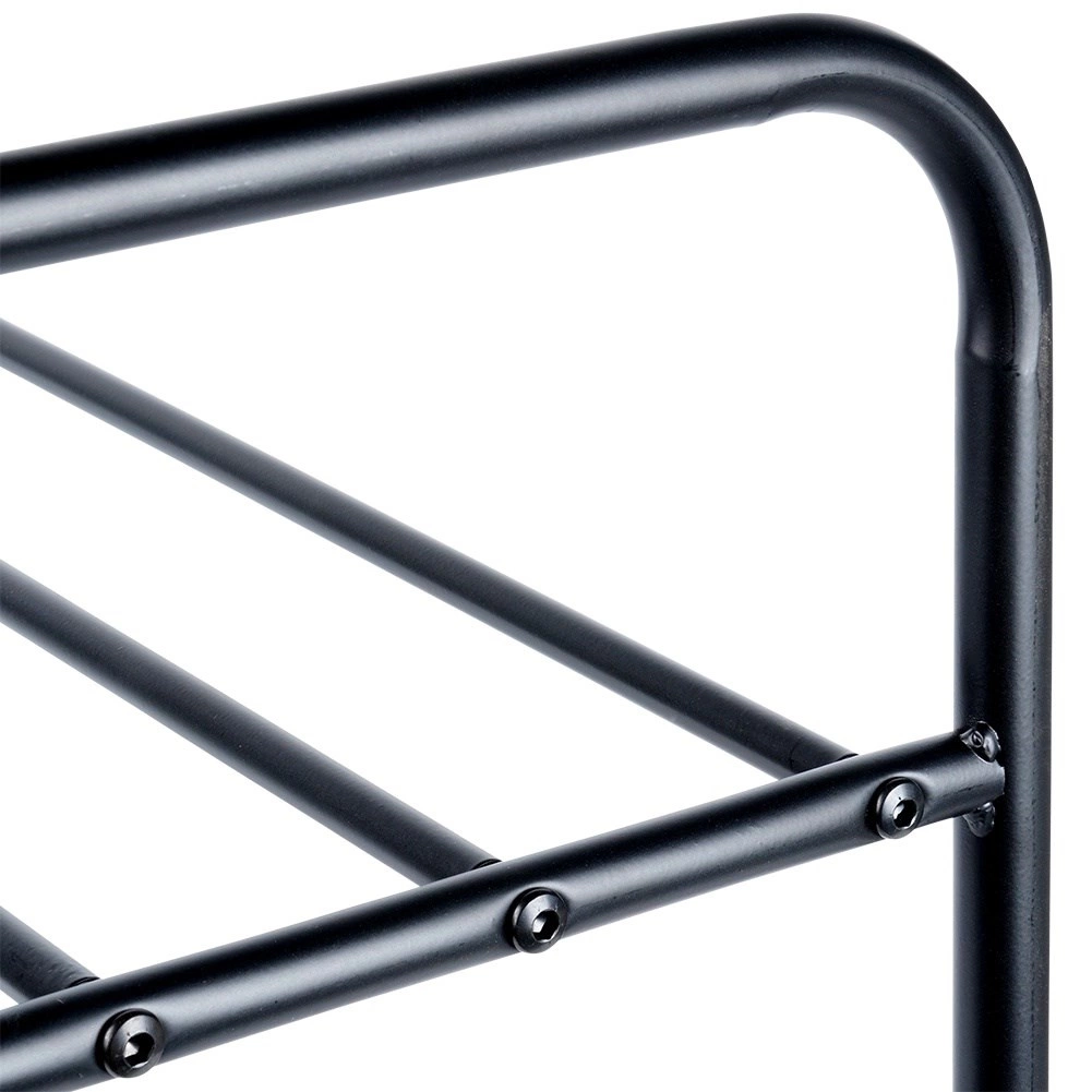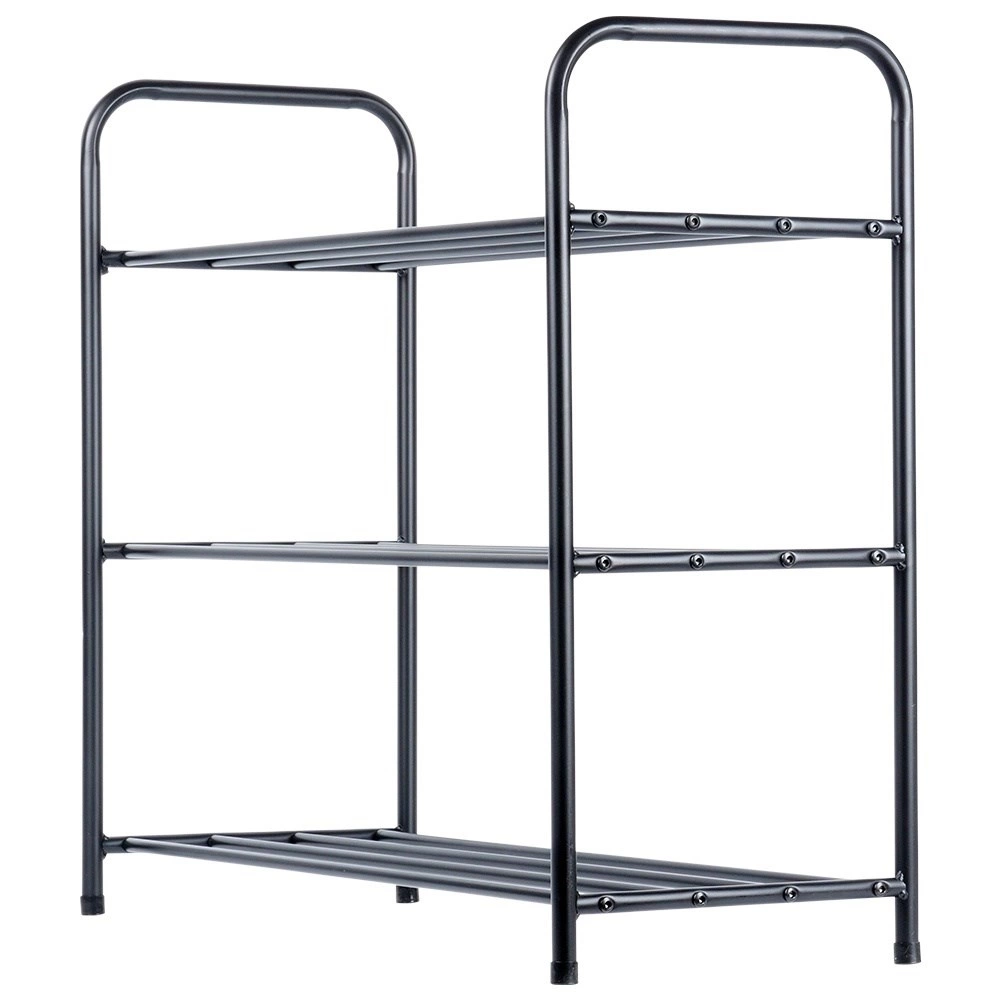 Ten trzypoziomowy metalowy stojak na buty wprowadzi porządek i przejrzystość w Twoim domu. Otwarta konstrukcja z rurkowymi rusztami umożliwia cyrkulację powietrza i utrzymuje obuwie przewiewne i szybko dostępne. Solidna rama z proszkowo malowanego metalu w czarnym matowym wykończeniu jest stabilna i trwała, a jednocześnie lekka, co ułatwia przenoszenie.