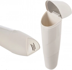 Szczelna pokrywka i otwory wentylacyjne chronią zawartość przed kurzem i wilgocią, a jednocześnie umożliwiają przewietrzenie po użyciu szczoteczki.
