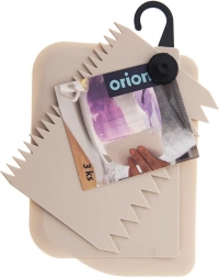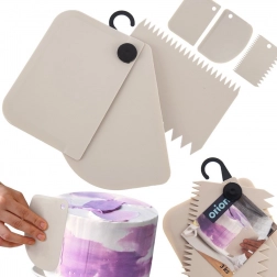 Szpachelki wykonano z wysokiej jakości plastiku, który nie pochłania zapachów i łatwo się czyści – możesz je bezpiecznie myć w zmywarce. Cały zestaw jest połączony kółkiem z haczykiem do zawieszenia, więc wszystkie profile masz pod ręką i oszczędzasz miejsce w kuchni. Odpowiednie dla profesjonalistów i domowych cukierników.