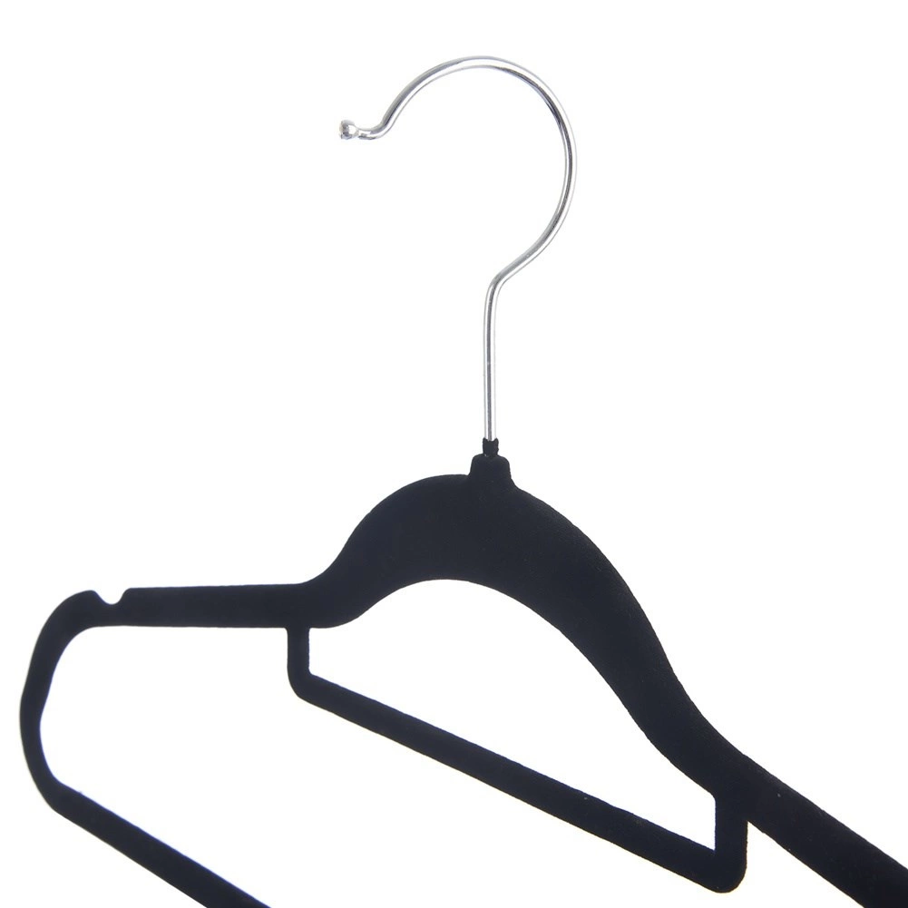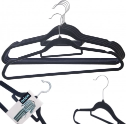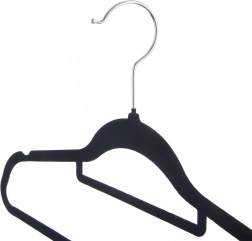 Porządkuj swoje ubrania stylowo i bez zagnieceń. Wieszak z delikatną welurową powierzchnią pewnie trzyma nawet śliskie materiały, chroni tkaniny, a dzięki obrotowemu haczykowi łatwo dopasujesz go do każdej przestrzeni. Eleganckie czarne wykończenie pasuje do każdej szafy.