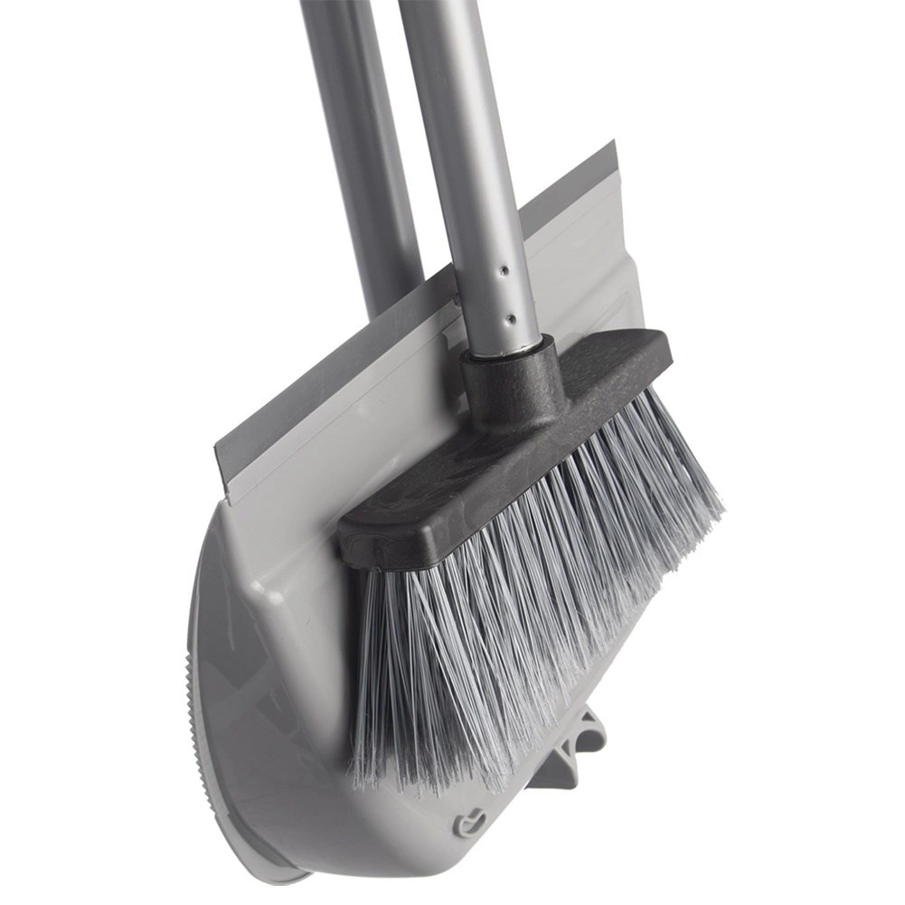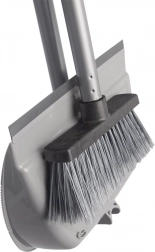 Szufelka z gumową krawędzią ściśle przylega do podłogi, a zmiotka z gęstym włosiem efektywnie zbiera kurz, okruchy i sierść.