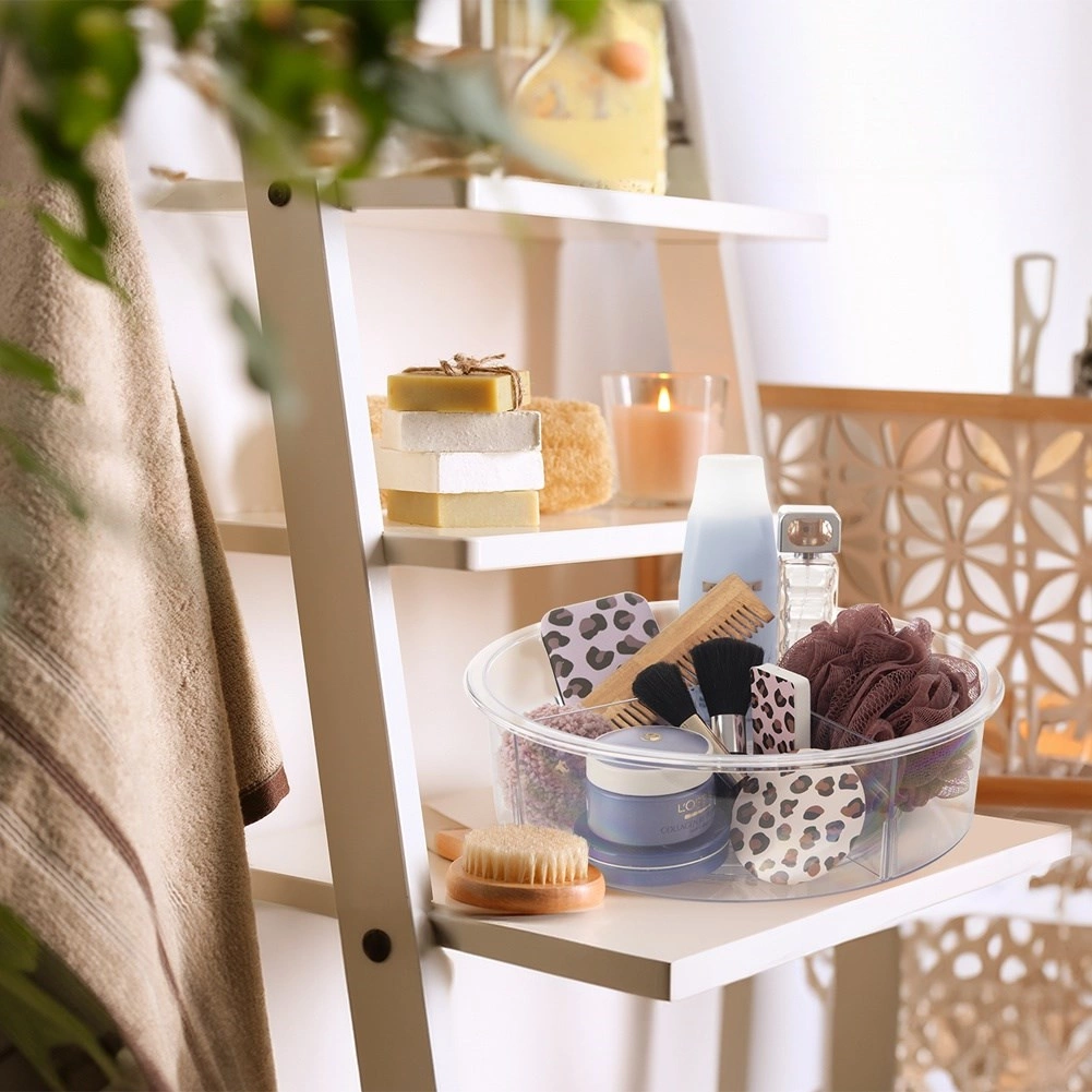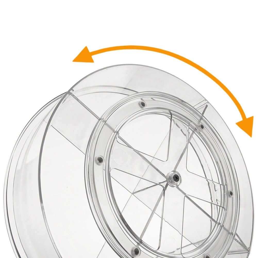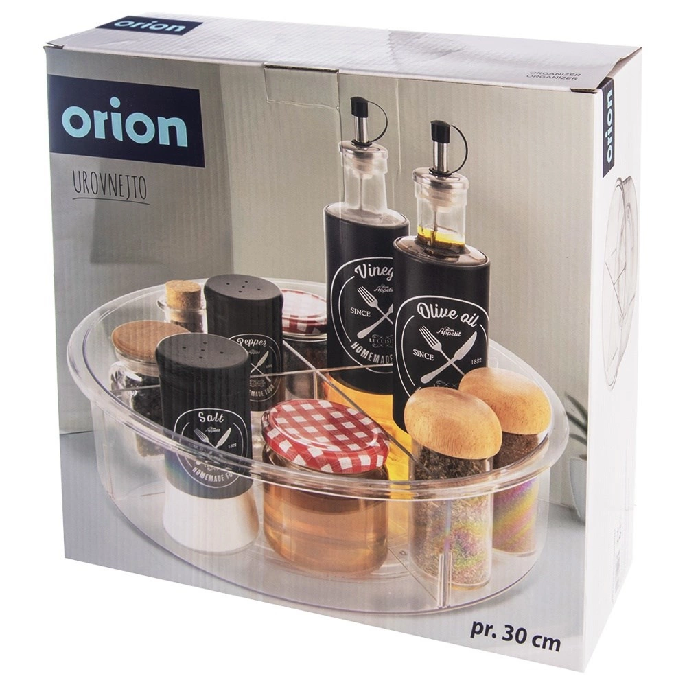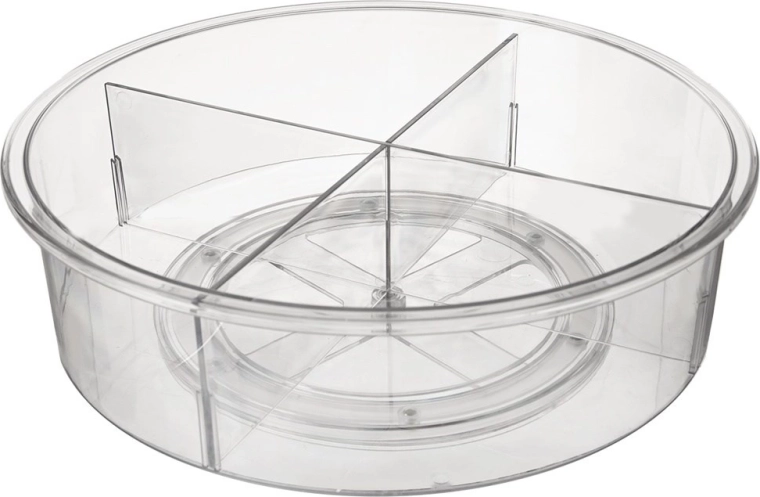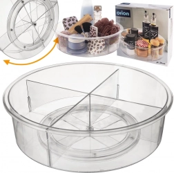 Praktyczny obrotowy organizer o średnicy 30 cm i wysokości 9 cm wprowadza porządek w kuchni, łazience i spiżarni. Dzięki podstawie o płynnym ruchu obraca się o 360°, więc wszystko masz szybko pod ręką. Przezroczyste wykonanie i 4 oddzielne sekcje ułatwiają przejrzyste sortowanie przypraw, kosmetyków, butelek i słoików, a wyższe krawędzie zapobiegają wypadaniu podczas obracania.