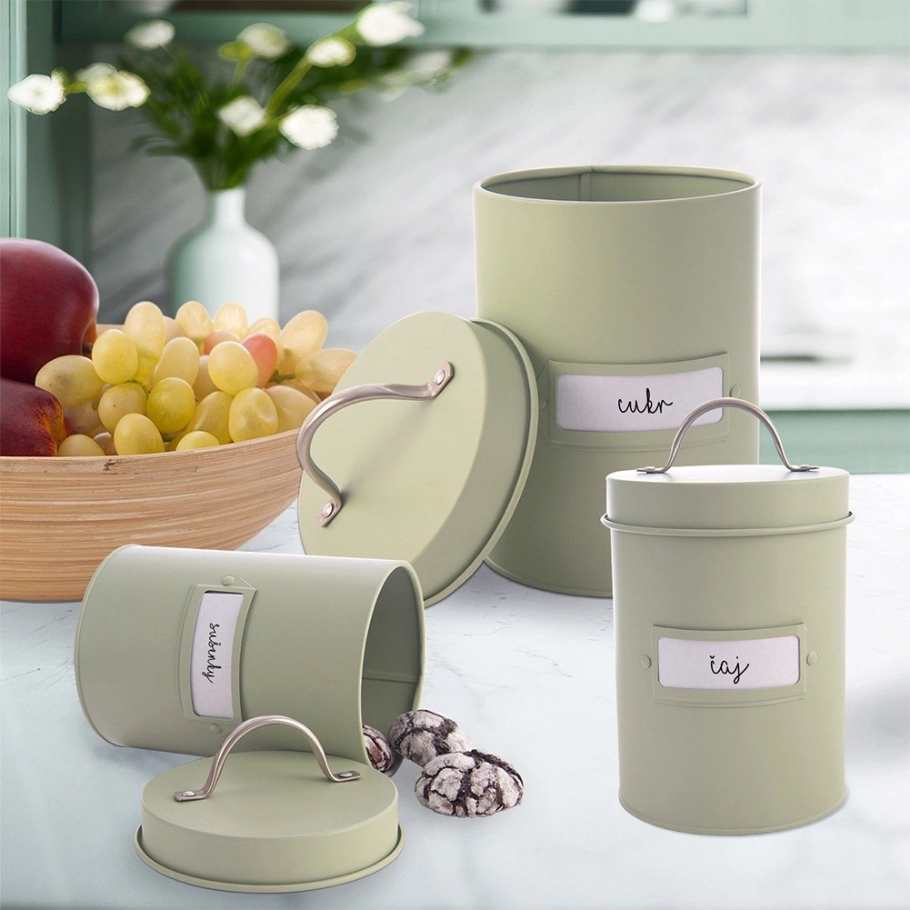Minimalistyczny wygląd i pastelowa zieleń pasują zarówno do nowoczesnych, jak i klasycznych kuchni. Przednia ramka na etykietę umożliwia oznaczenie zawartości i utrzymanie doskonałej organizacji w domu. Puszkę wykorzystasz także poza kuchnią – w łazience, biurze lub warsztacie na drobiazgi i akcesoria.