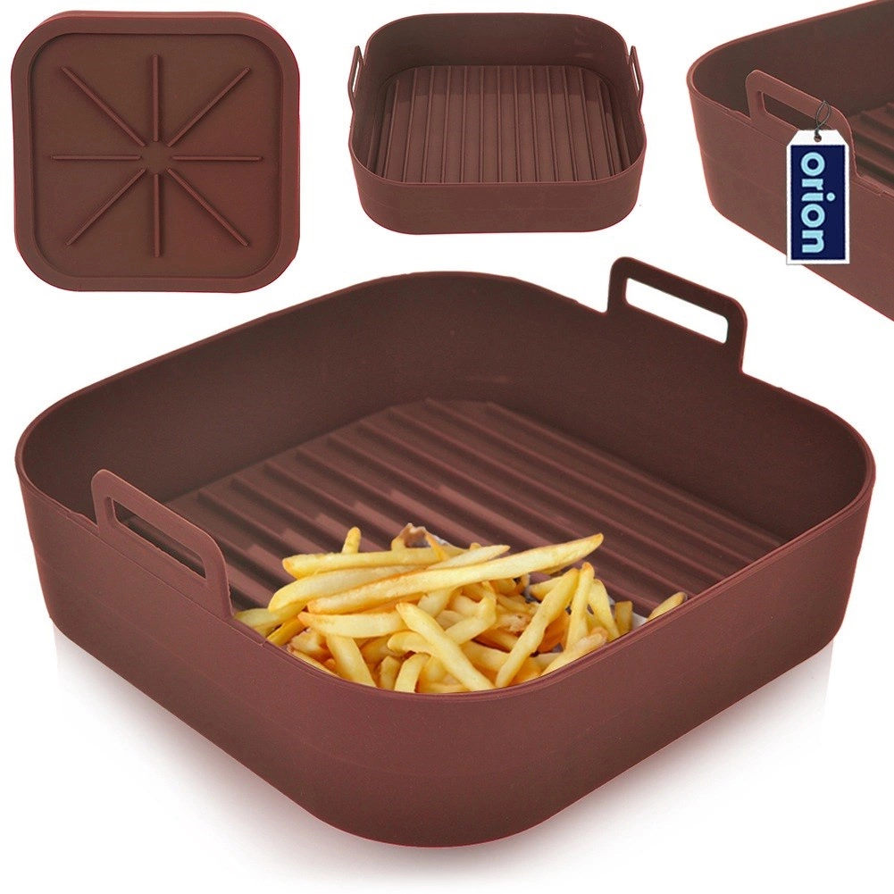 Praktyczny silikonowy wkład do frytkownic beztłuszczowych o wymiarach 17,5 × 17,5 × 6,5 cm ułatwia gotowanie i sprzątanie. Jest wielokrotnego użytku, nieprzywierający i bezpieczny w kontakcie z żywnością (bez BPA). Dzięki zintegrowanym uchwytom łatwo go wyjąć, chroni wnętrze frytkownicy przed zabrudzeniem i wytrzymuje temperatury od -40 °C do +220 °C.