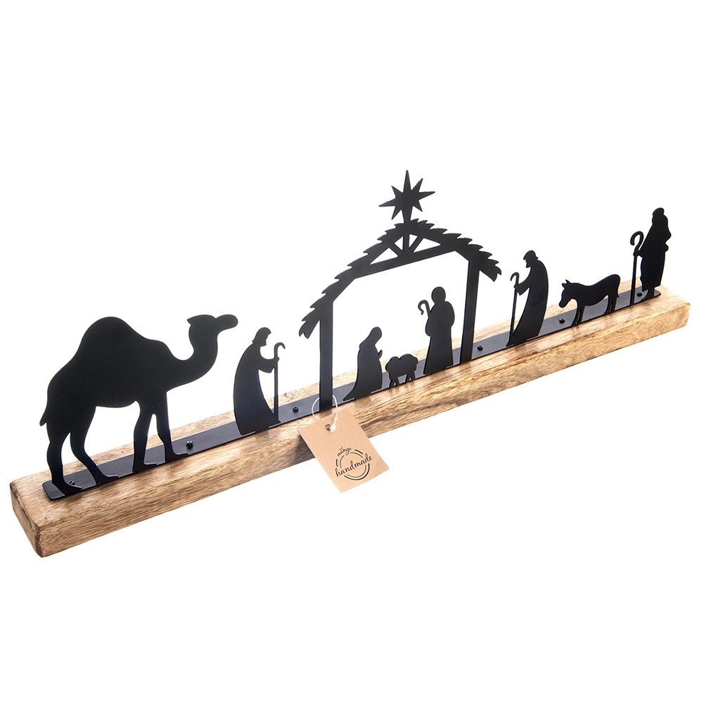 Ta starannie wykonana szopka zachwyca czystymi liniami metalowych sylwetek i naturalnym wyglądem drewna mango. Dzięki kompaktowym wymiarom 51 × 5 × 18 cm doskonale sprawdzi się na półce kominkowej, parapecie, komodzie lub jako dekoracja stołowa. Minimalistyczny design pięknie współgra zarówno z nowoczesnym, jak i tradycyjnym wnętrzem, podkreślając atmosferę Świąt.