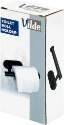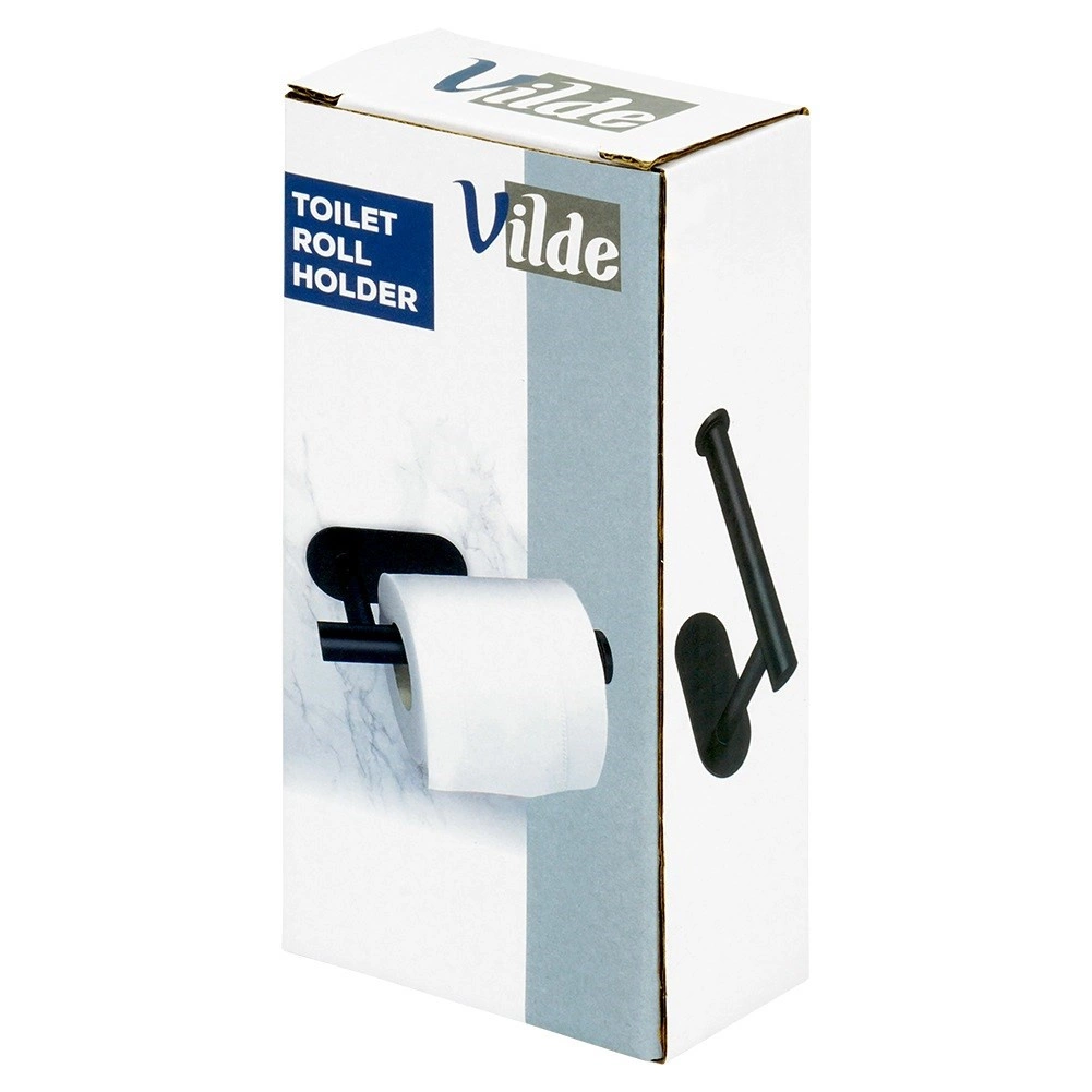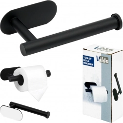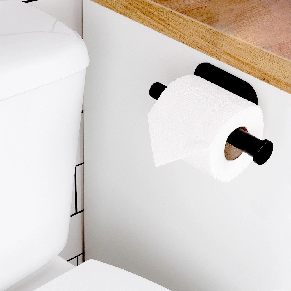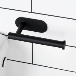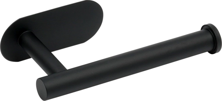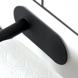 Stylowy uchwyt na papier toaletowy z czarno lakierowanej stali nierdzewnej zapewnia łatwy dostęp, szybką wymianę rolki oraz nowoczesny wygląd twojej łazienki. Wymiary 16,5 × 7,7 × 4,5 cm, solidne wykonanie i prosty montaż bez wiercenia za pomocą dołączonych taśm dwustronnych.