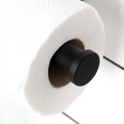 Minimalistyczny uchwyt na papier toaletowy w matowej czerni pięknie uzupełni zarówno nowoczesne, jak i klasyczne łazienki. Wysokiej jakości stal nierdzewna zapewnia długą żywotność i odporność na wilgoć, a otwarty koniec ramienia umożliwia szybką i wygodną wymianę rolki.