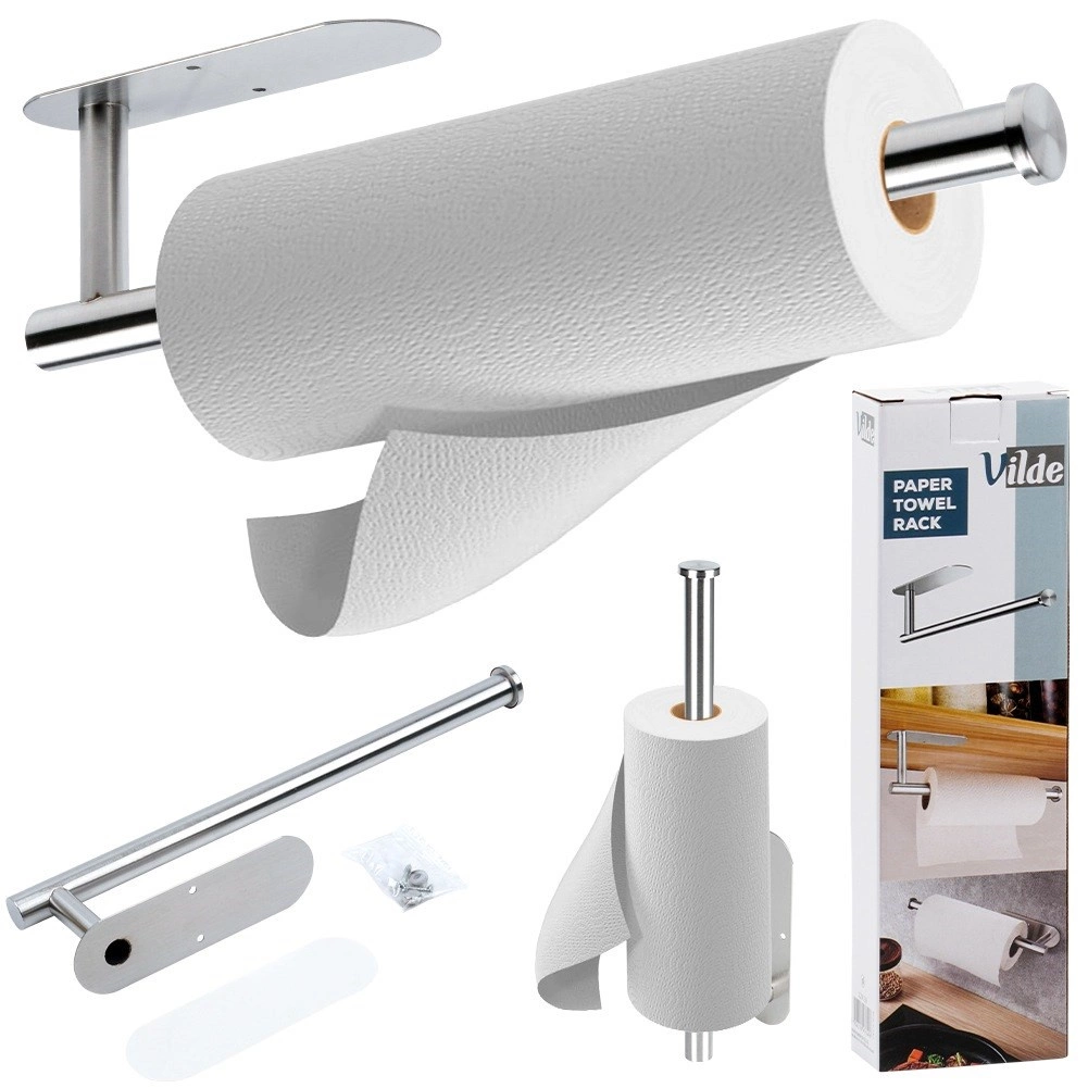 Praktyczny i wytrzymały uchwyt na ręczniki papierowe z wysokiej jakości stali nierdzewnej w eleganckim srebrnym kolorze. Oszczędza miejsce, zapewnia wygodne odrywanie i łatwy dostęp do ręczników w kuchni, łazience i biurze. W zestawie znajduje się osprzęt montażowy do łatwej instalacji. Wytrzymała stal nierdzewna dla długiej żywotności oraz uniwersalny rozmiar pasujący do większości rolek.