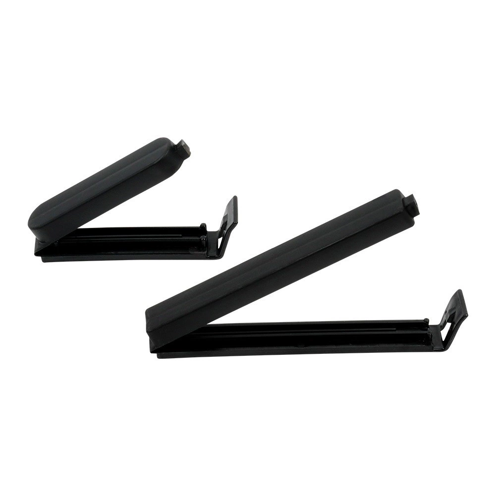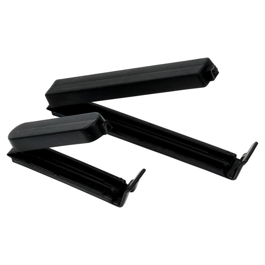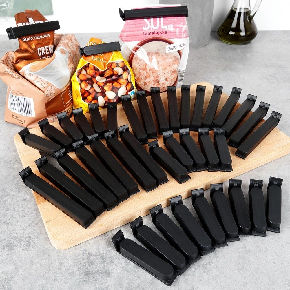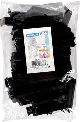 Wykonane z wytrzymałego plastiku w eleganckim czarnym kolorze – są lekkie, ale mocne i przeznaczone do codziennego użytku. Idealne do opakowań ze snackami, kawą, przyprawami, mrożonymi warzywami czy otwartych torebek z makaronem i płatkami.